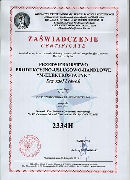 . potwierdzony certyfikatem