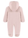 Dziewczęcy kombinezon w jasnoróżowym kolorze, który sprawdzi się idealnie dla każdego maleństwa w chłodniejsze dni. Kombinezon wykonany jest przyjemnego w dotyku polaru, a od wewnętrznej strony posiada miła, ciepłą, bawełnianą podszewkę. Zapinany jest na ekspres po całej długości, aby ułatwić ubieranie/rozbieranie maleństwa. Kombinezon posiada nakładane rękawiczki, które można w dowolnej chwili wywinąć.