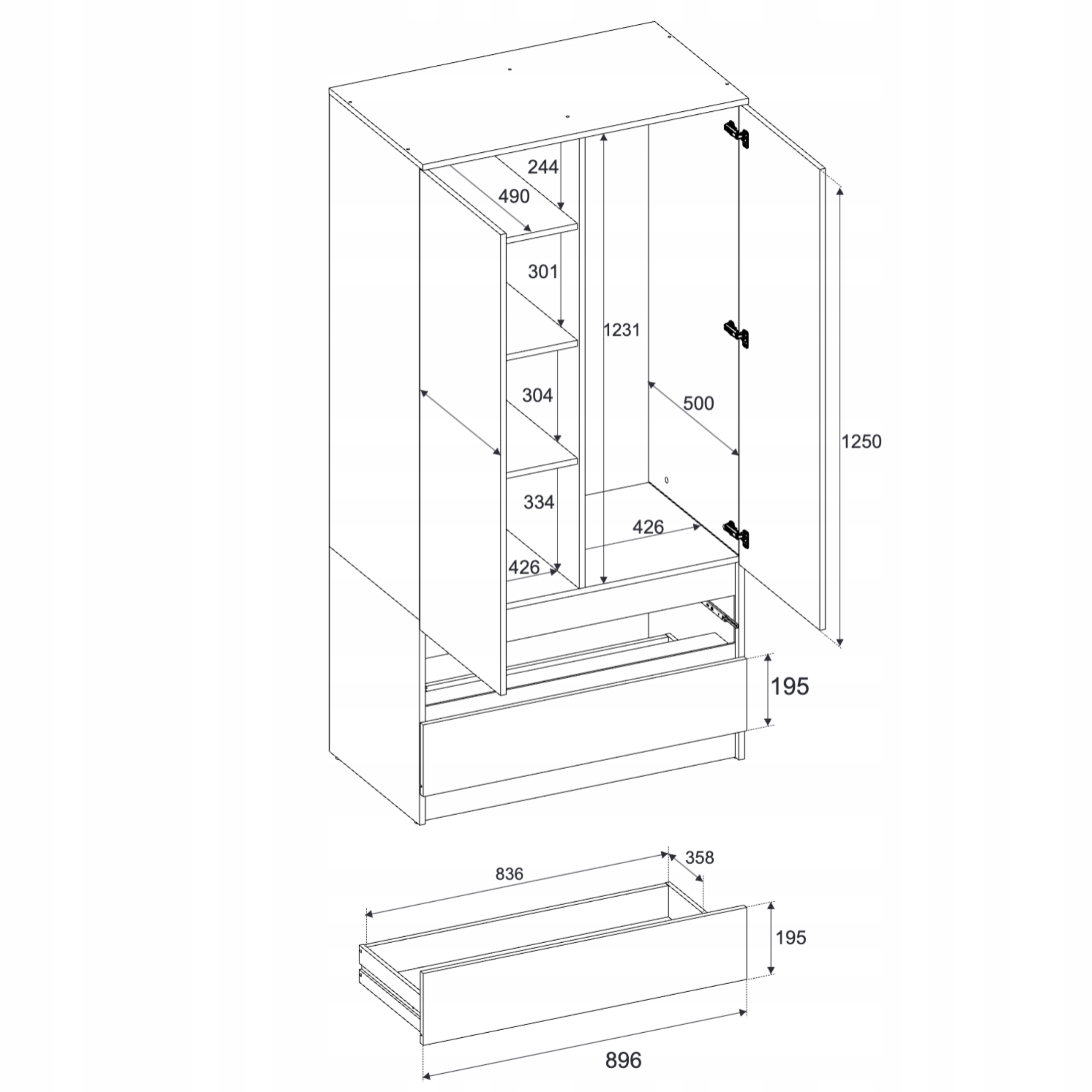 Szafa oferuje dużą pojemność, co pozwala na przechowywanie ubrań, akcesoriów i innych przedmiotów w dobrze zorganizowany sposób.
