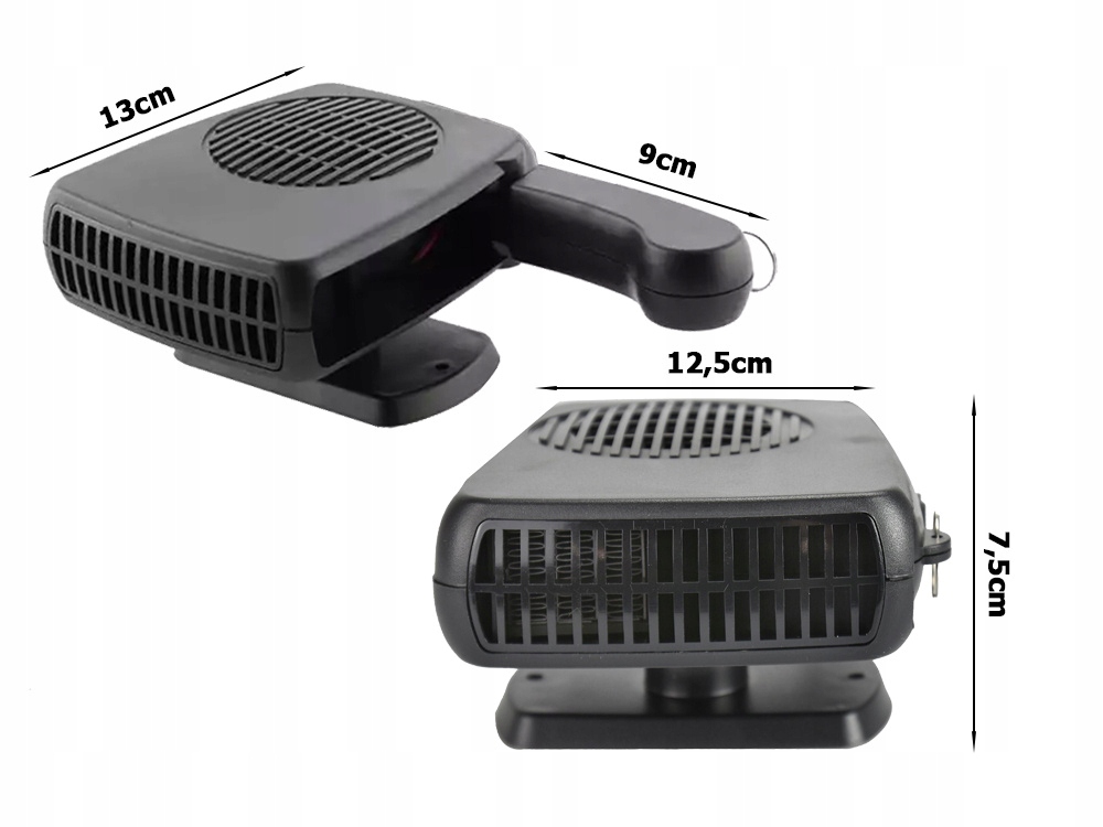 Питание от прикуривателя автомобиль 12V. имеет функцию нагрева и охлаждения, что делает его очень полезным как летом, так и зимой. Возможность регулировки угла наклона (вверх-вниз) и поворота в плоскости 360 градусов, облегчает удобную установку воздуходувки в салоне автомобиля. Используется для обогрев салона, оттаивание стекол и испарение их изнутри. Выдвижная ручка это позволяет использовать нагреватель как сушилки, а длинный кабель позволяет для свободного использования. Мочь служит альтернативой скребкам - не царапает стекла, размораживание происходит быстро и без использования сила.