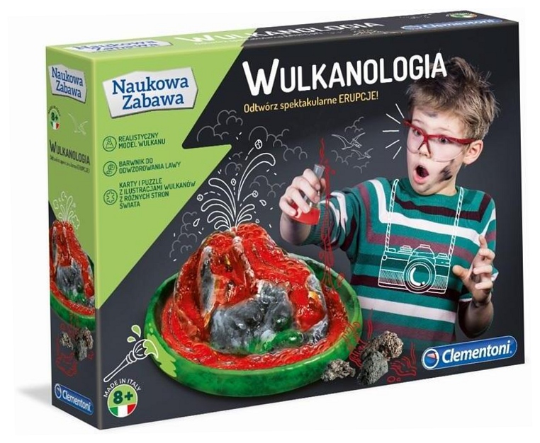 Zestaw naukowy do odtworzenia jednego z najbardziej fascynujących zjawisk naturalnych na Ziemi: erupcji wulkanu!Po przeczytaniu instrukcji Ty też możesz zostać ekspertem geologiem!Udekoruj model wulkanu 3D za pomocą farb i pędzla zawartego w zestawie!Zestaw zawiera 25 kart najważniejszych wulkanów na świecie oraz puzzle do ułożenia!