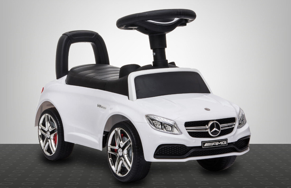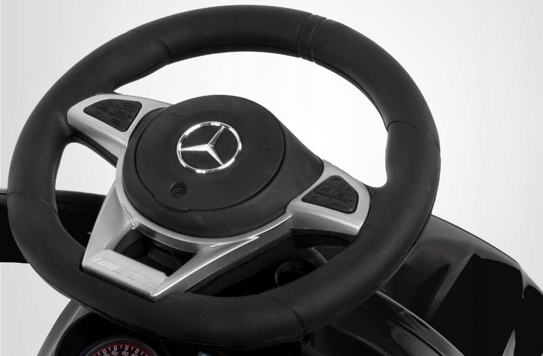 Kierownica jeździka SUN BABY Mercedes Coupe AMG C36 wyposażona jest w przyciski z dźwiękami, które dodają atrakcyjności i zachęcają dziecko do interaktywnej zabawy. Został zaprojektowany z myślą o dzieciach powyżej 12 miesiąca życia, oferując komfort i bezpieczeństwo podczas zabawy. Maksymalne obciążenie jeździka do 23 kg.