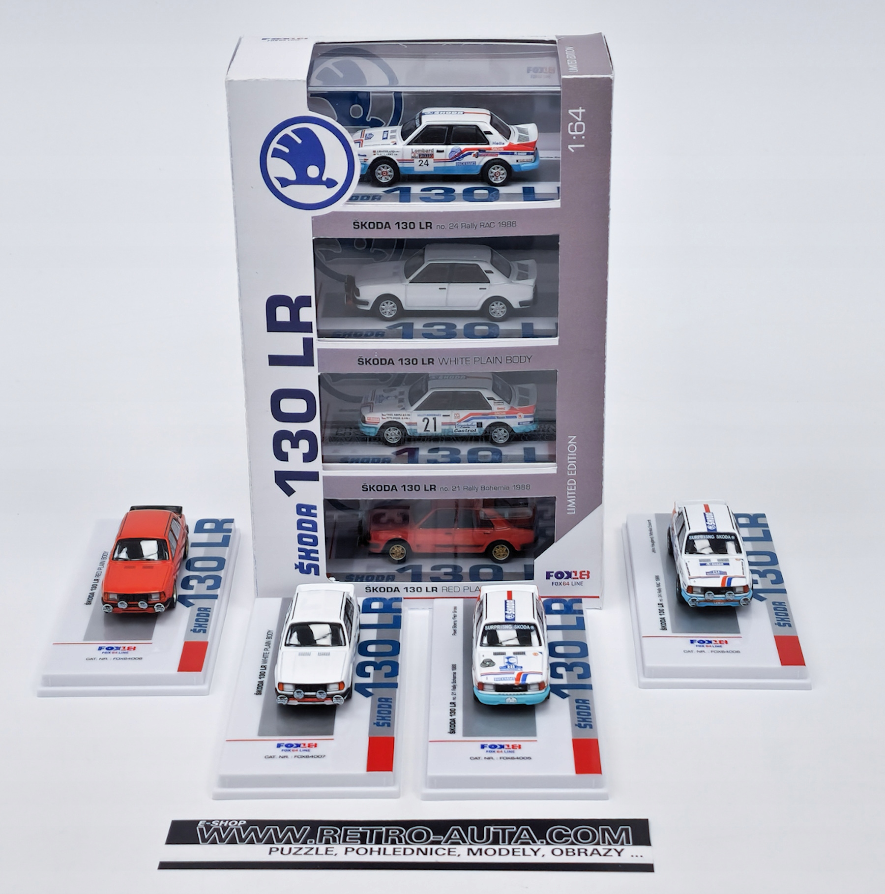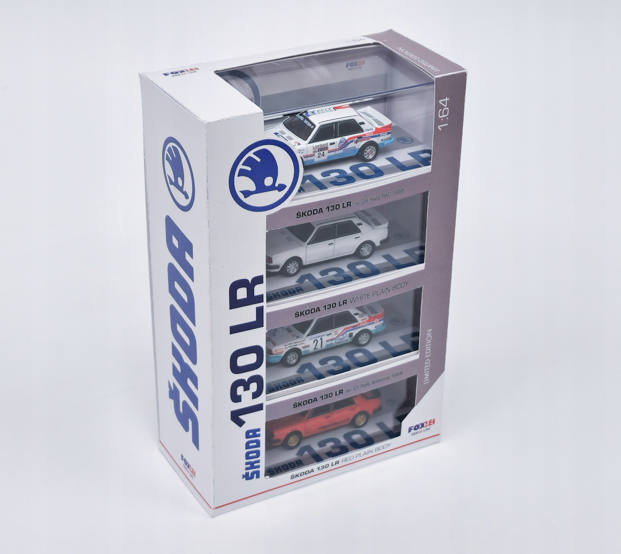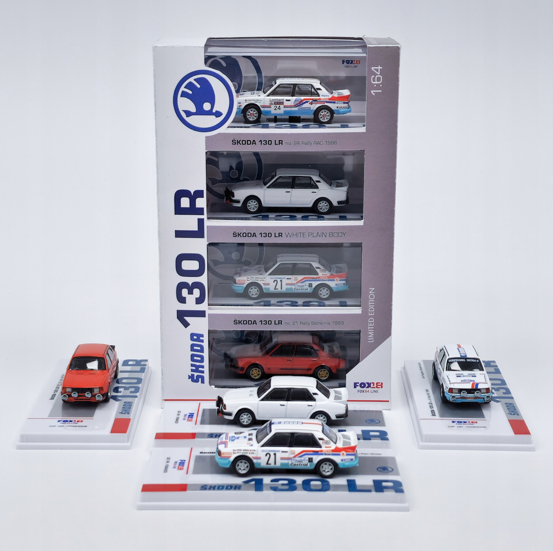 Specjalny zestaw kolekcjonerski 4 legendarnych samochodów rajdowych ŠKODA 130 LR w ekskluzywnej wersji, w skali 1:64.