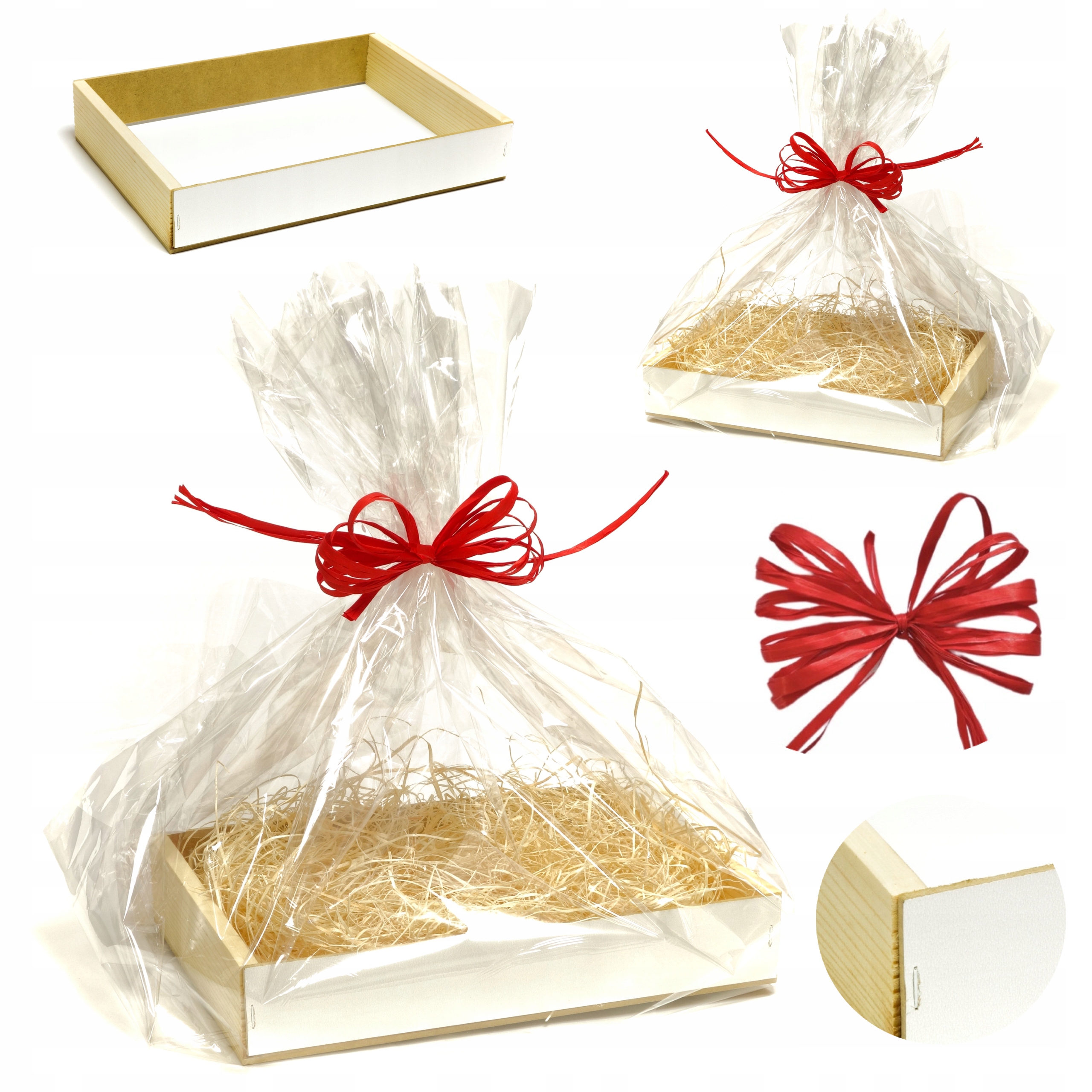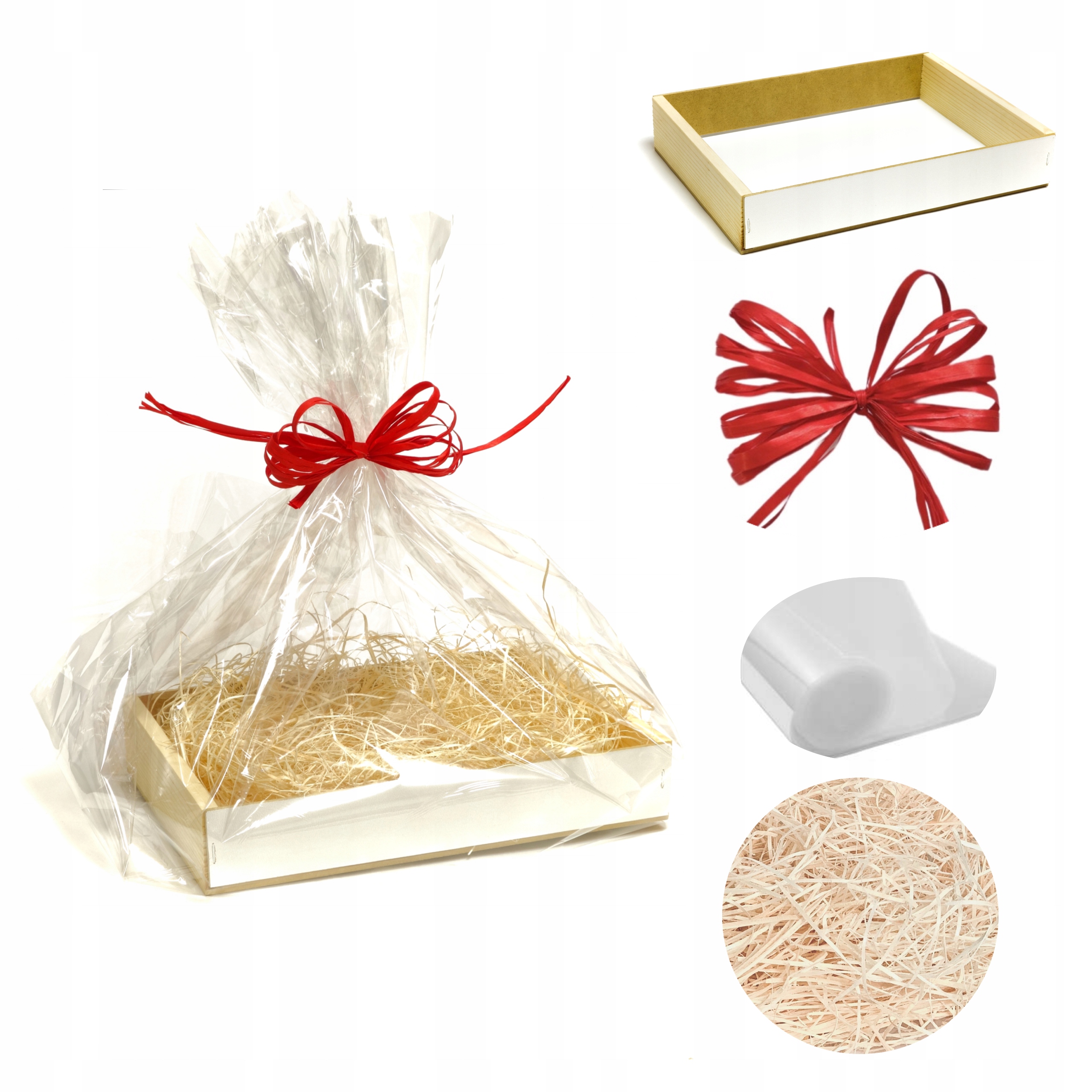Koszyk prezentowy w formie skrzynki z dodatkami do samodzielnego zapakowania prezentu