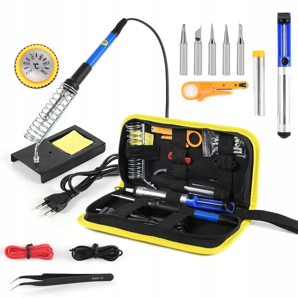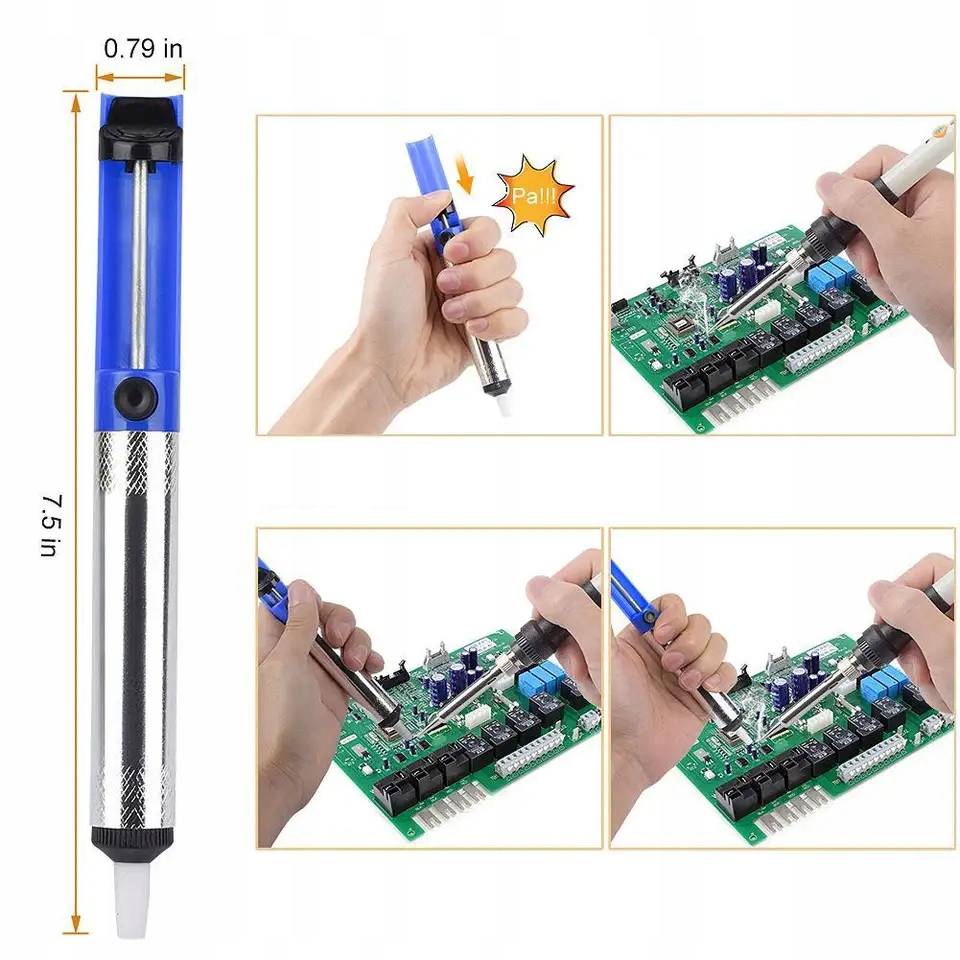 Solidne wykonanie i dobrze wyważona konstrukcja zapewni Ci wysoki komfort pracy. Lutownica posiada regulację temperatury od 200 do 450°C. Temperaturę w łatwy sposób dostosowuje się za pomocą pokrętła znajdującego się na kolbie lutowniczej. Duża moc powoduje momentalne nagrzewanie się grota, dzięki czemu możesz szybko rozpocząć lutowanie lub rozlutowywanie detali. Dzięki gąbce dołączonej do zestawu czyszczenie grotów jest szybkie i proste. Dodatkowo w naszym zestawie otrzymujesz niezbędne narzędzie ułatwiające wylutowania elementu - odsysacz lutowniczy w aluminiowej obudowie.