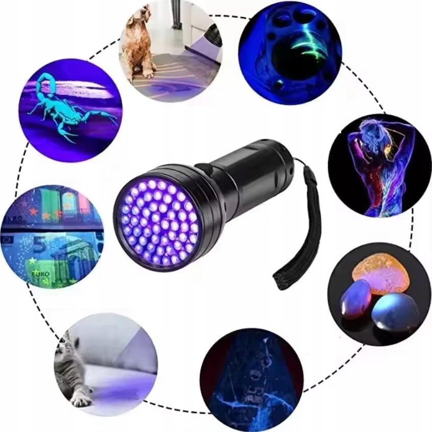 ➡️ Wykrywanie szkód: Latarki UV są pomocne w lokalizowaniu mikropęknięć i uszkodzeń w materiałach takich jak szkło czy ceramika.