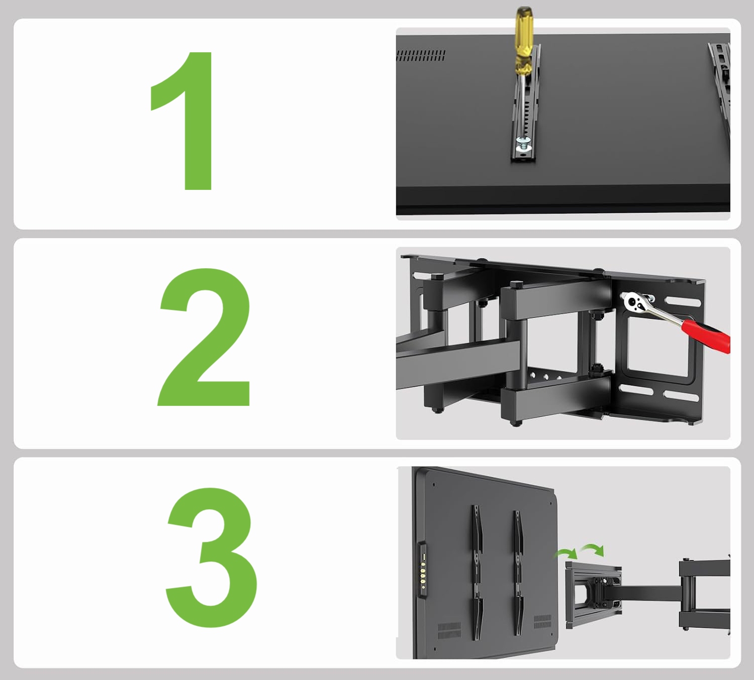 ✅ Możliwe jest umiejscowienie telewizora nawet w narożniku pokoju, ponieważ uchwyt wyposażony jest w długie, podwójne ramiona.