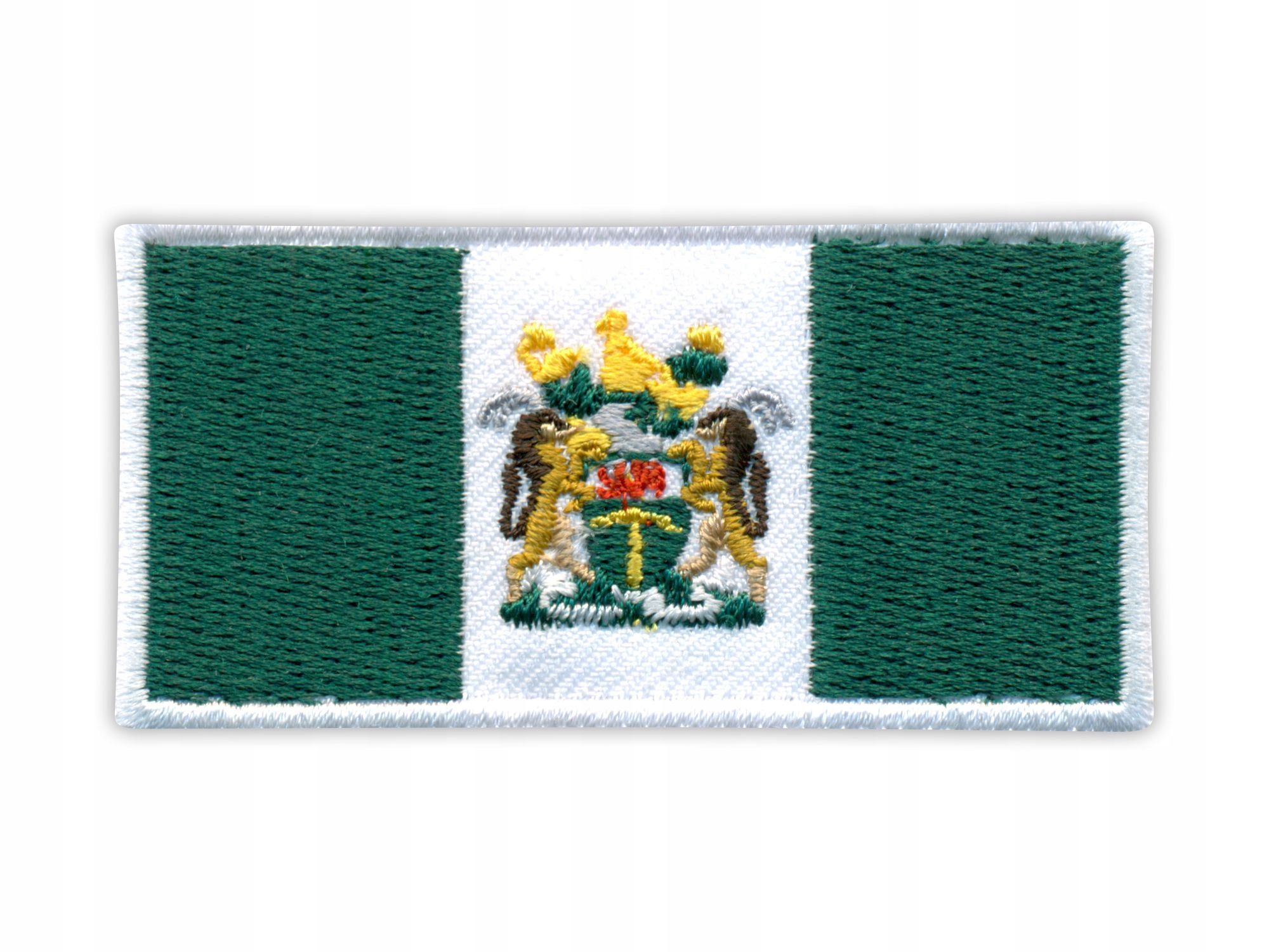 Naszywka Flaga Rodezji z lat 1968–1979 wykonana za pomocą techniki haftu komputerowego.