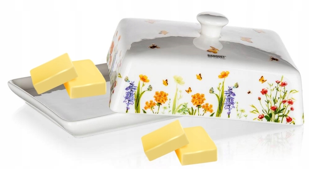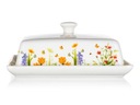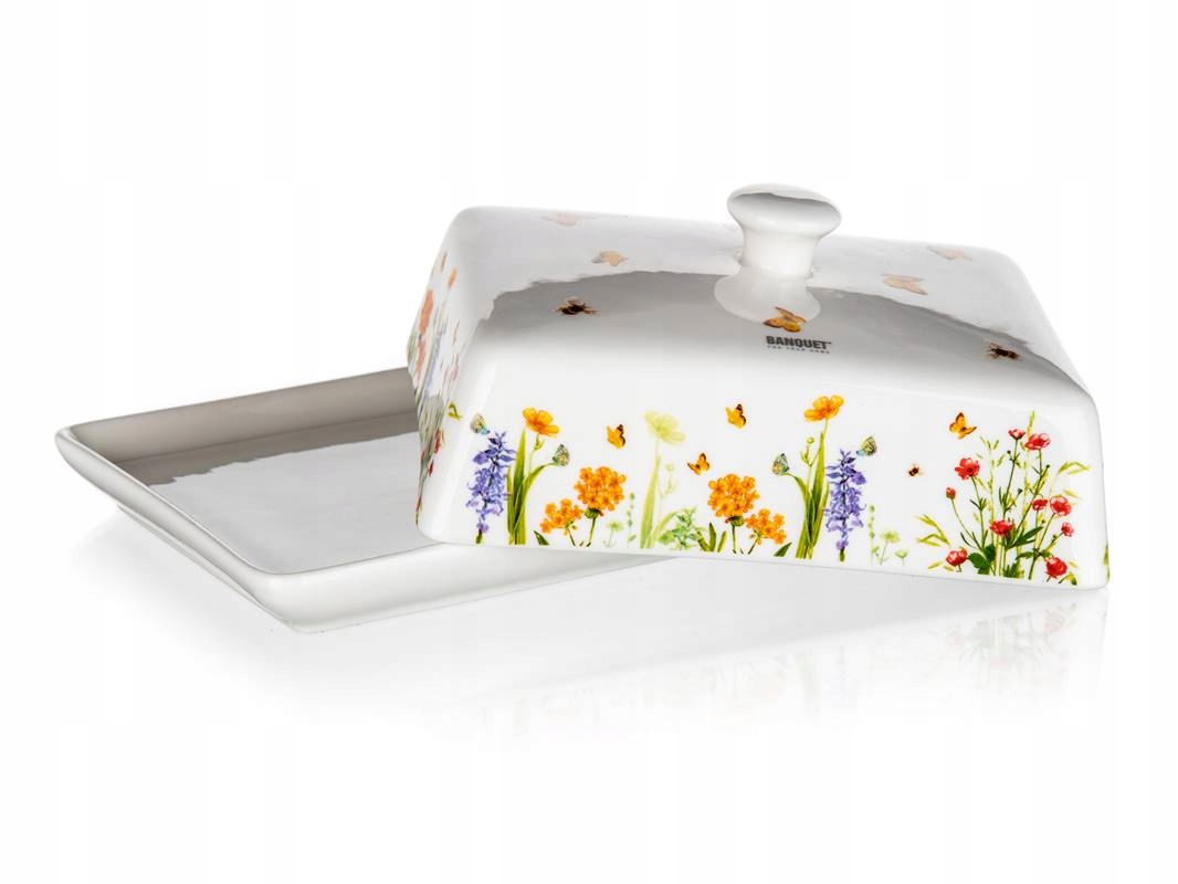 Maselniczka ŁĄKA z pięknym kwiatowym wzorem o długości 17,5 cm nadaje się do przechowywania masła w lodówce oraz do serwowania masła na co dzień i od święta.
