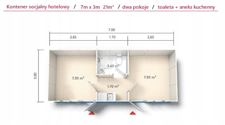 Kontener socjalny, pracowniczy, hotelowy dla 4 osób