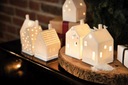 Ten porcelanowy domek niemieckiej marki Rader pozwoli stworzyć przytulną atmosferę po zmroku. Pięknie prezentuje się we wnętrzu, szczególnie jeśli stworzysz własną kompozycję w stylu małego miasteczka. Domek wykonany jest z białej porcelany. Jest szczególnie pięknym akcentem dekoracyjnym w okresie bitego narodzenia i zimy. Wymiary: podstawa 7.5 x 7.5 cm, wysokość 16.5 cm. Dedykowany do używania ze świeczkami typu tealight.