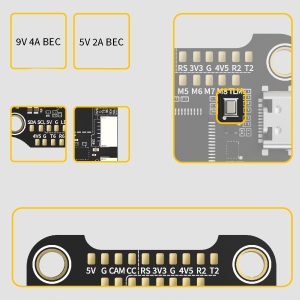W zestawie dwie metody instalacji, jedna strona ma złącza wtykowe do cyfrowego nadajnika wideo, odbiornika, kamery, VTX i GPS, 4 x złącza LED. Kolejny do lutowania