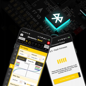 Zbudowany z lepszym chipem 2 w 1 Bluetooth/WiFi, zapewniającym o 33% szybszą bezprzewodową transmisję danych. Zaktualizuj oprogramowanie FC za pomocą smartfona w ciągu zaledwie 1 minuty! Podłącz ten FC przez Bluetooth i skonfiguruj wszystkie ustawienia Betaflight/Emuflight/INAV, jak chcesz.