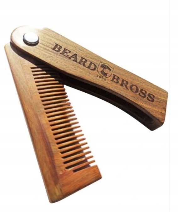 Grzebień składany BEARD BROSS wykonany z drewna akacjowego zapakowany w czarne ETUI