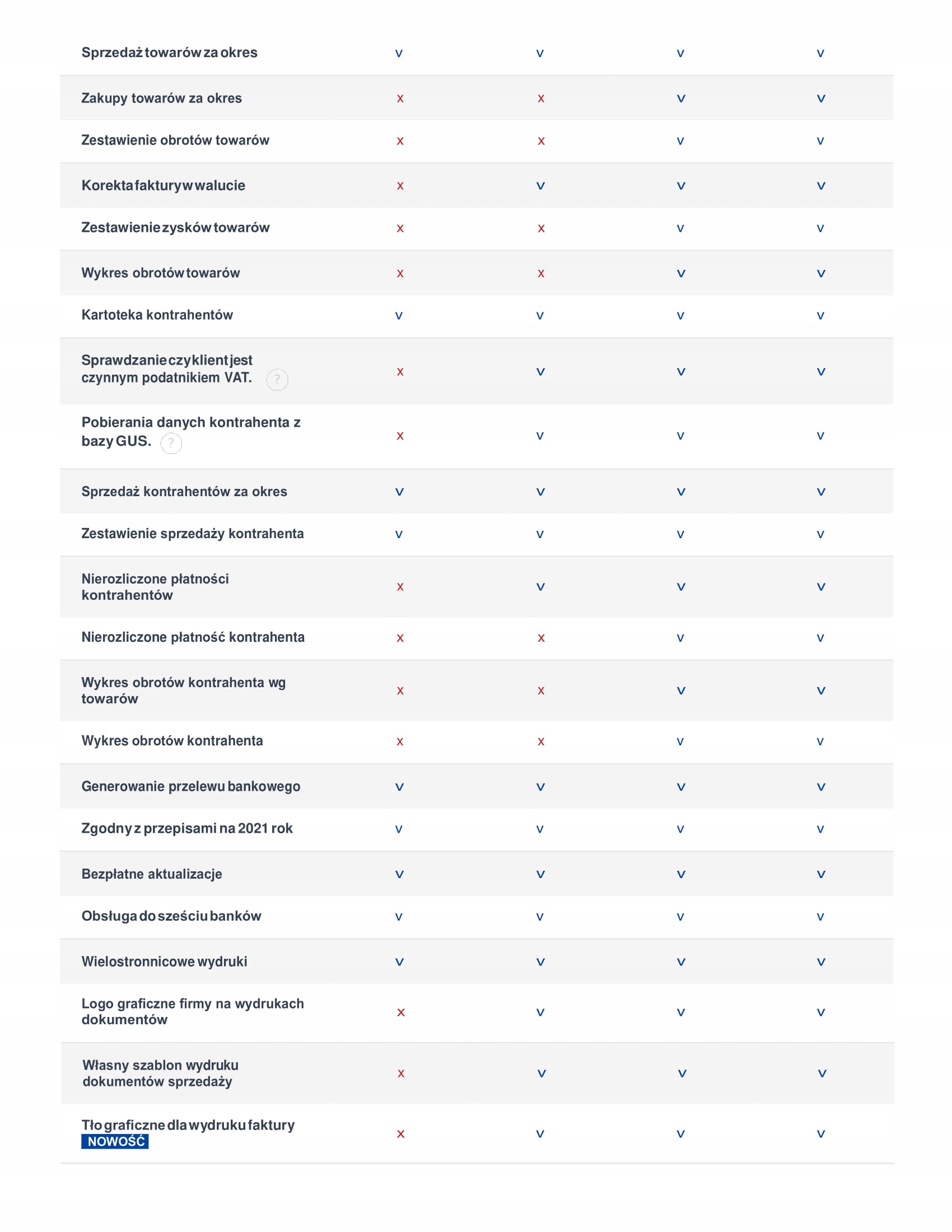 Możliwość wystawiania dokumentów z danymi Wystawcy, Sprzedawcy, Nabywcy oraz Odbiorcy. Dokumenty sprzedażowe można utworzyć na podstawie innego dokumentu co pozwala na skrócenie czasu wystawiania podobnych faktur oraz wydruk faktury wraz z blankietem wpłaty za fakturę.