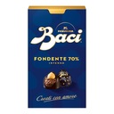Perugina Baci Latte 200 gramów. Włoskie praliny z ziarenkami orzechów laskowych, całym orzechem laskowym oblane czekoladą gorzką. Produkt włoski, na włoski rynek.