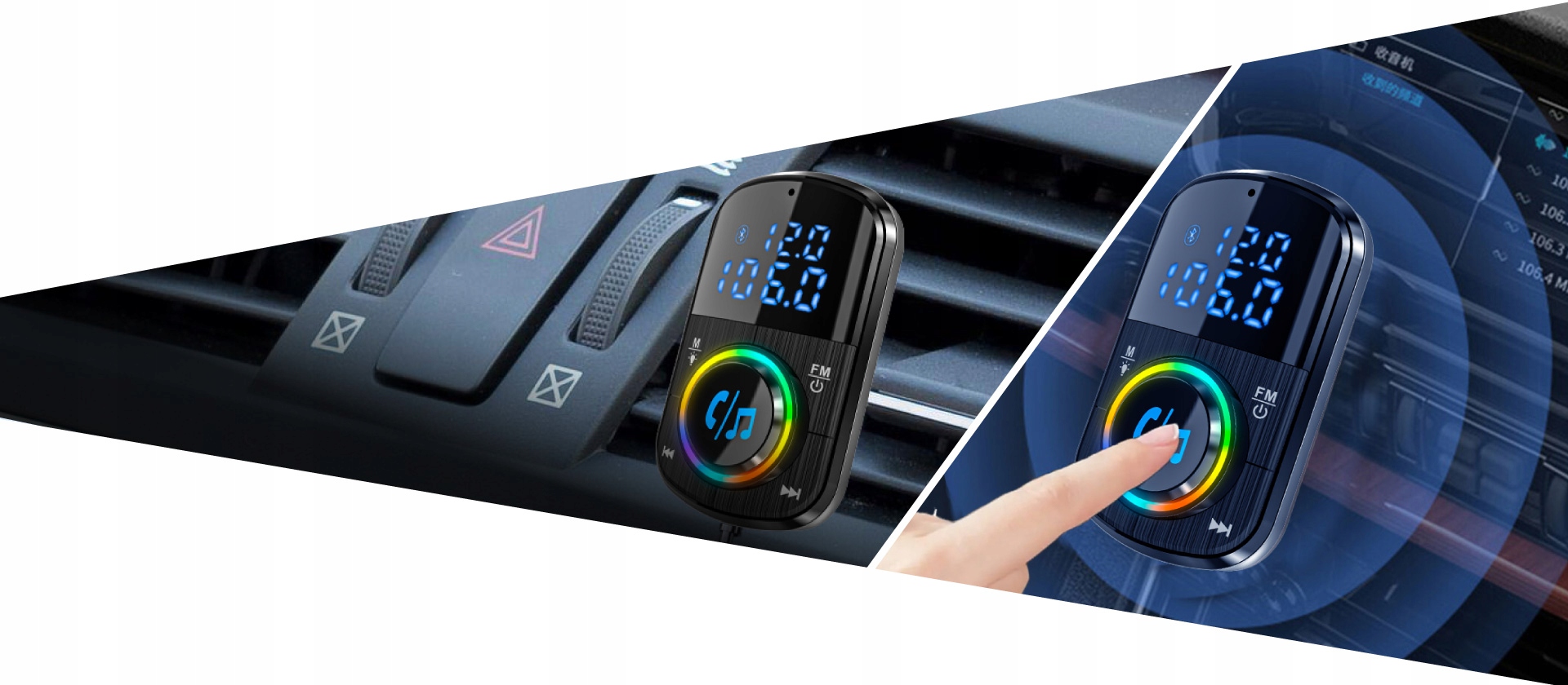 Urządzenie zostało podzielone na dwie części dla większej wygody użytkowania. Ładowarkę podłącza się do gniazda zapalniczki, natomiast funkcjonalny wyświetlacz można podłączyć do kratki wentylacyjnej lub za pomocą dodatkowej podstawki przymocować do deski rozdzielczej samochodu.
