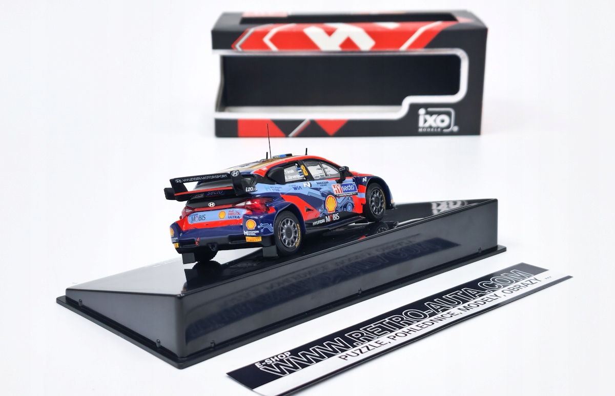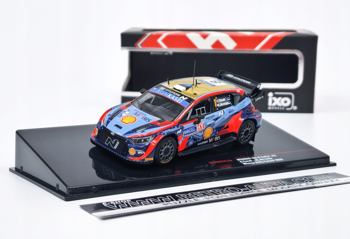 Kolekcjonerski metalowy model samochodu wyścigowego Hyundai i20 N, w skali 1:43. Jeźdźcy: O.Tanak/M.Järveoja