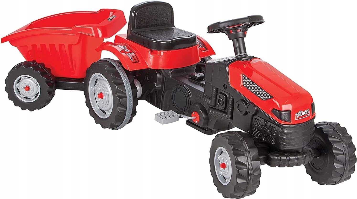 DUŻY TRAKTOR NA PEDAŁY Z PRZYCZEPĄ143cm PILSAN CZERWONY