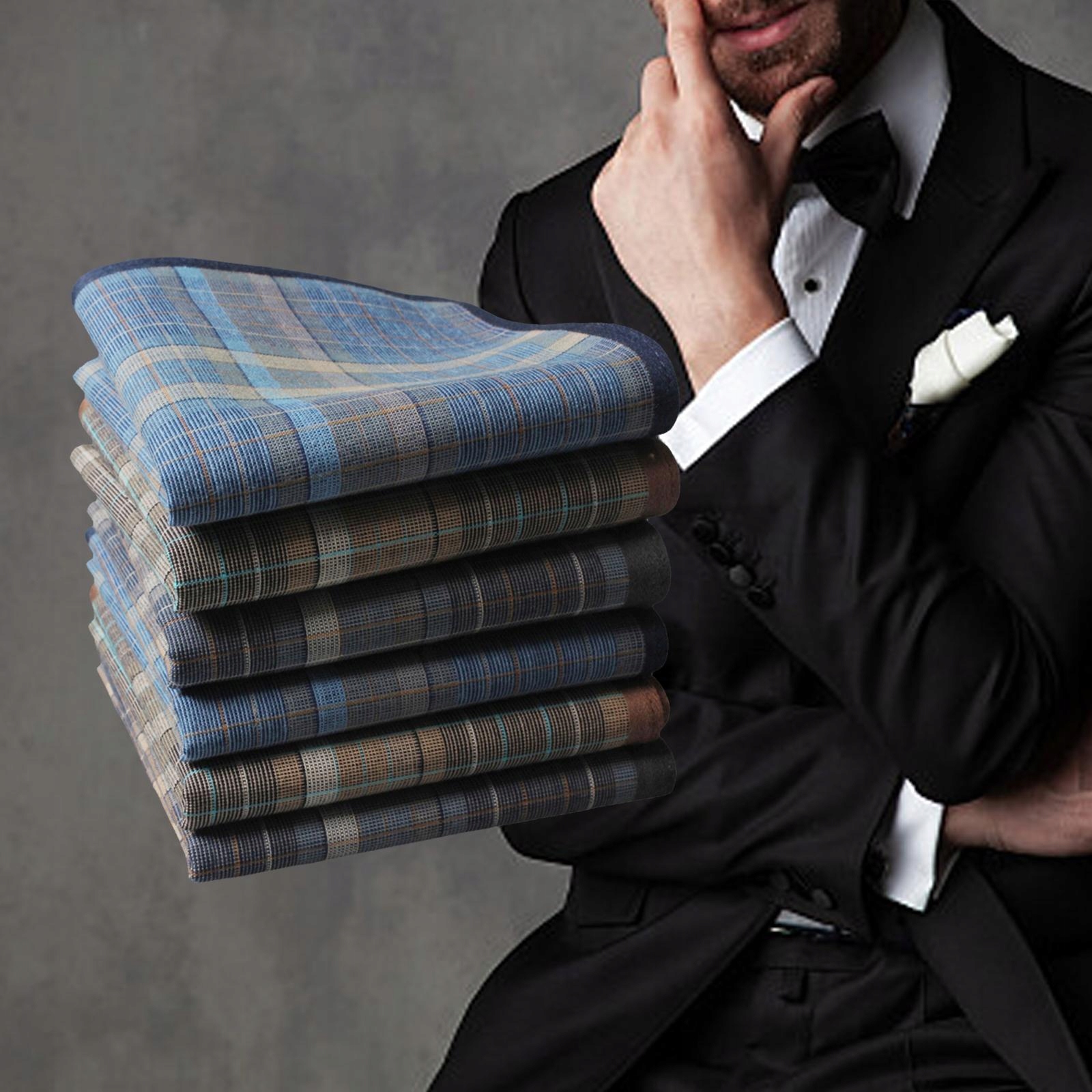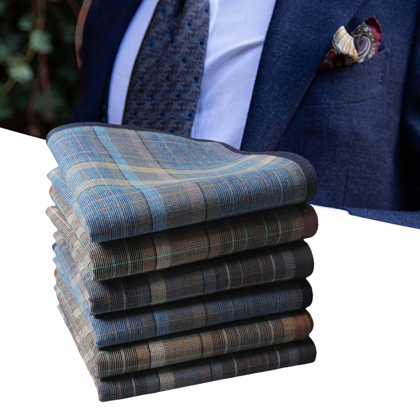 6Szt Bawełniane Chusteczki Męskie Miękki Pasek Wzór W Kratę Kieszonkowe Kwadraty