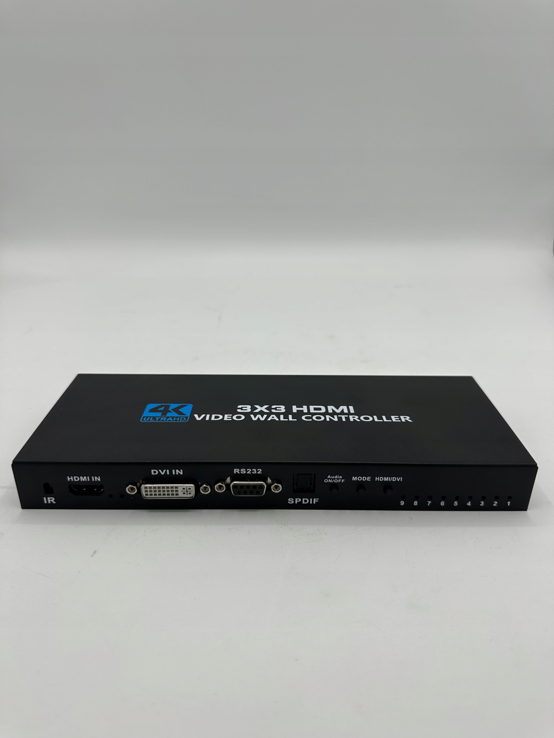 13 regulowanych trybów wyświetlania: Ten procesor obrazów wideo HDMI 3x3 może podłączyć do 9 telewizorów LCD lub innych monitorów, które mogą obsługiwać kilka trybów wyświetlania, takich jak 1x1,1x2,1x3,1x4,2x1,2x2,2x3, 2x4, 3x1,3x3,4x1,4x1,4x1,4x1,4 x 1,4 x 1,4 x 1,4 x 1,4 4x2. Wszystkie te tryby zapewniają wiele opcji łączenia, można łatwo zmieniać tryby za pomocą pilota IR bez wstawania lub naciskania przycisku "Switch" na kontrolerze ściany telewizora.
