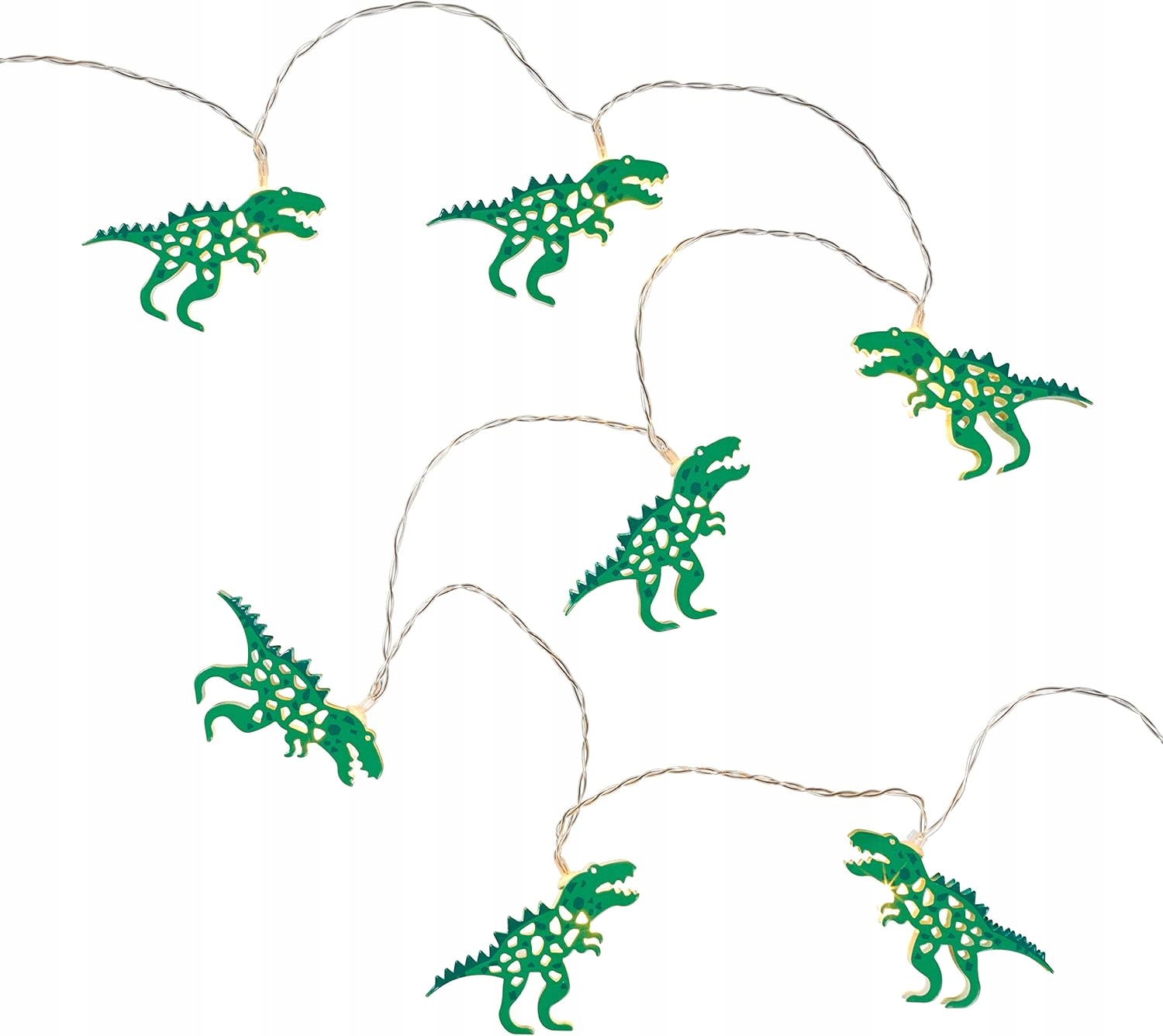 Nasze lampki z motywem dinozaurów idealnie nadają się do wystroju pokoju w stylu jurajskim! 12 dinozaurów jest równomiernie rozłożonych na 7 stopach przezroczystego kabla, a każdy z nich zawiera jedną ciepłą białą diodę LED, która stworzy przytulne światło w sypialni Twojego malucha.