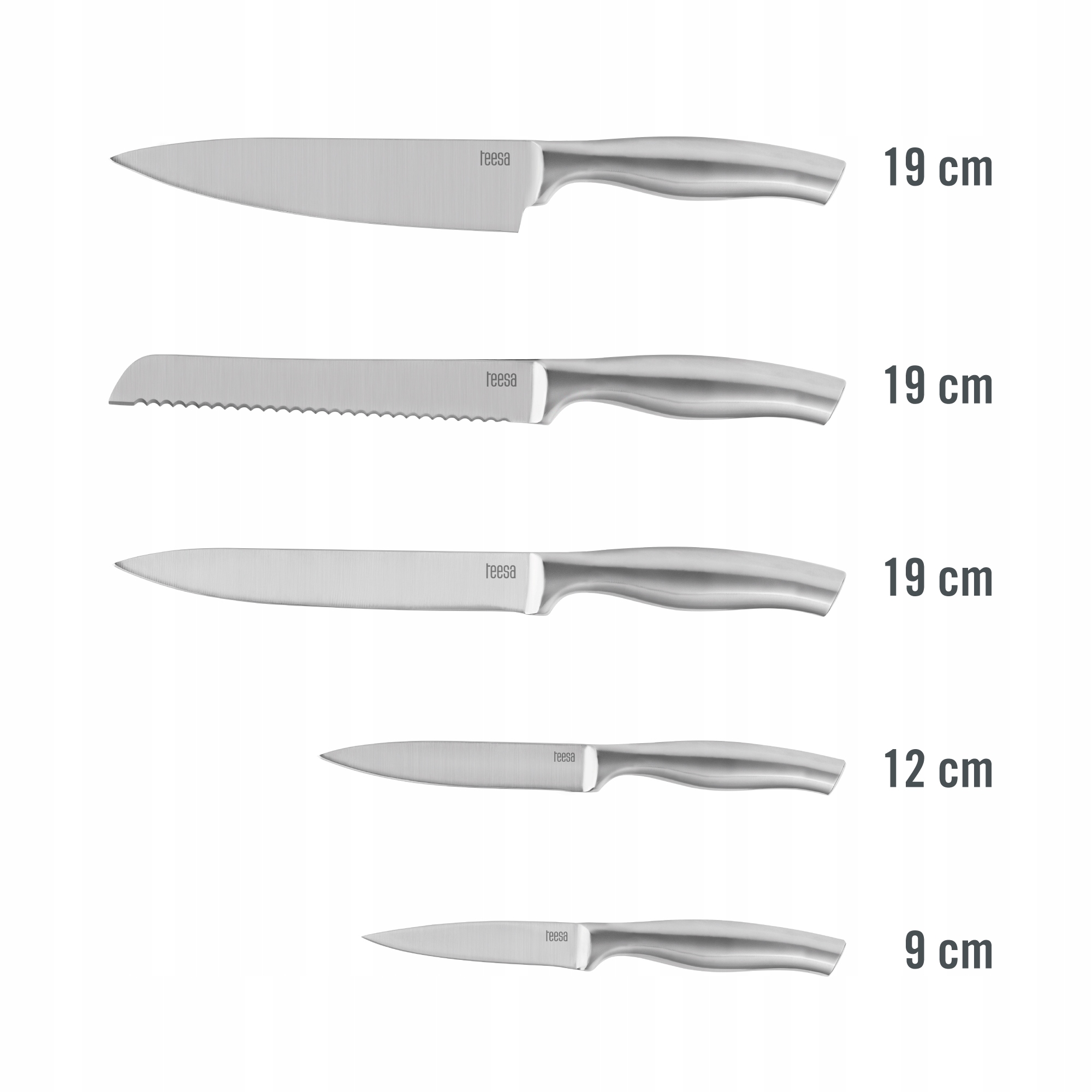 Этот набор кухонных ножей в деревянном блоке не только эстетично выглядит, но и определенно это облегчает поддержание порядка, занимает мало места на прилавке и с 5 различными лезвиями, это универсальный. Ножи из набора Teesa помогут вам во многих повседневных делах, таких как нарезка хлеба, мясо, филе рыбы, пилинг фруктов и овощей или измельчение трав.
