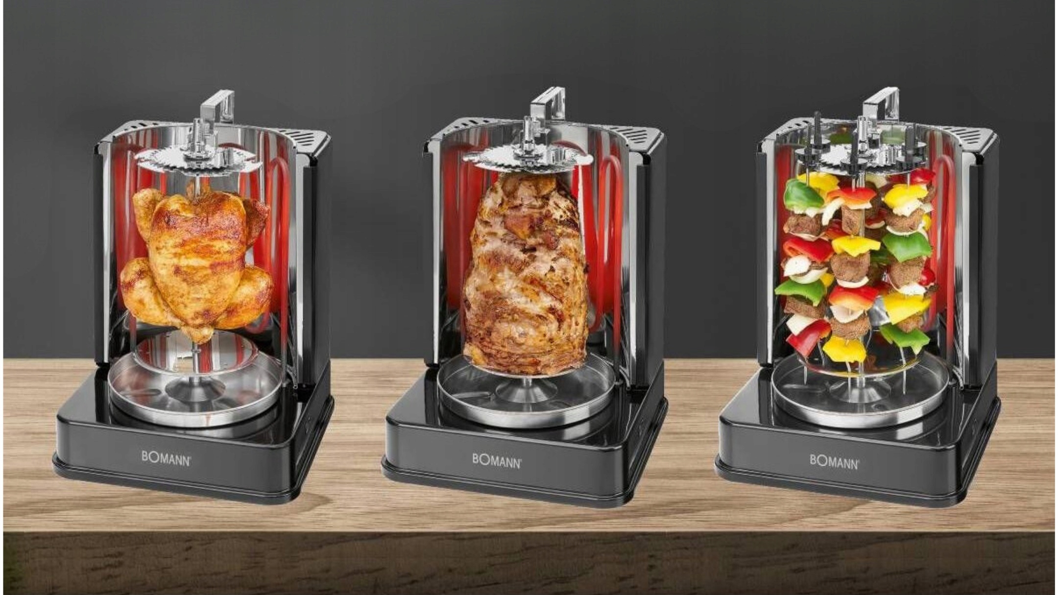 Занимает мало места и универсален - стоячий мультиопектор Clatronic DVG 3686. Благодаря ему вы будете готовить сочные жареные блюда из овощей, мяса и даже фруктов. Полный вкуса и здоровья. Благодаря вертикальному прикреплению курицы, гироскопа или шашлыка они равномерно подрумянятся и они поджарятся. Внутри остается влажным и мягким.