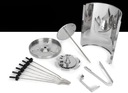 W komplecie znajduje się: rożen obrotowy do drobiu, kebaba i innych produktów, 6 szpikulców do szaszłyków, taca na tłuszcz i okruchy oraz uchwyt ze stali nierdzewnej do zdejmowania gorących akcesoriów.