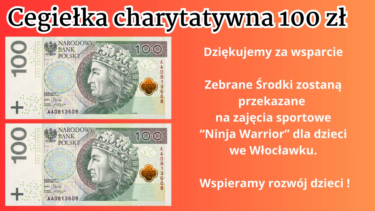 Wystarczy symboliczne 100 zł, aby przyczynić się do wielkich zmian w życiu dzieci! Każda cegiełka charytatywna o wartości 100 zł to krok w stronę zdrowszej i bardziej aktywnej przyszłości najmłodszych mieszkańców Włocławka.