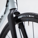 Удобная геометрия с более высокой головкой и более короткой верхней трубкой, чтобы обеспечить больше вертикальное положение, чем классическая дорожная рама. Алюминий 6061 T6 sloping с штурвалом интегрированные. Вес рамы в р. М: 1930 г.