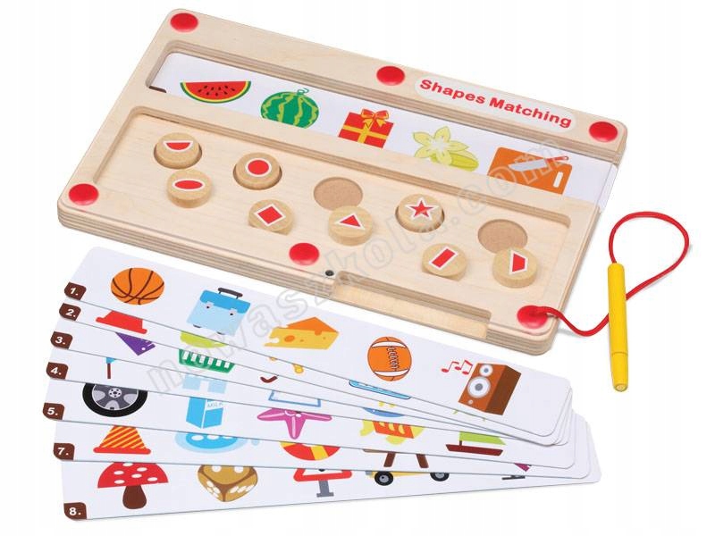 Zabawka, która świetnie rozwija i ćwiczy rozpoznawanie oraz dobieranie kształtów według wzoru w załączonych kartach pracy. Wyposażona w magnetyczny sztyft, który pozwala umieszczać klocki w odpowiednich miejscach. Jako pomoc dydaktyczna czy terapeutyczna rozwija wyobraźnię, koordynację oraz precyzję ruchów. Produkt doskonale wpisuje się w koncepcję planu daltońskiego.