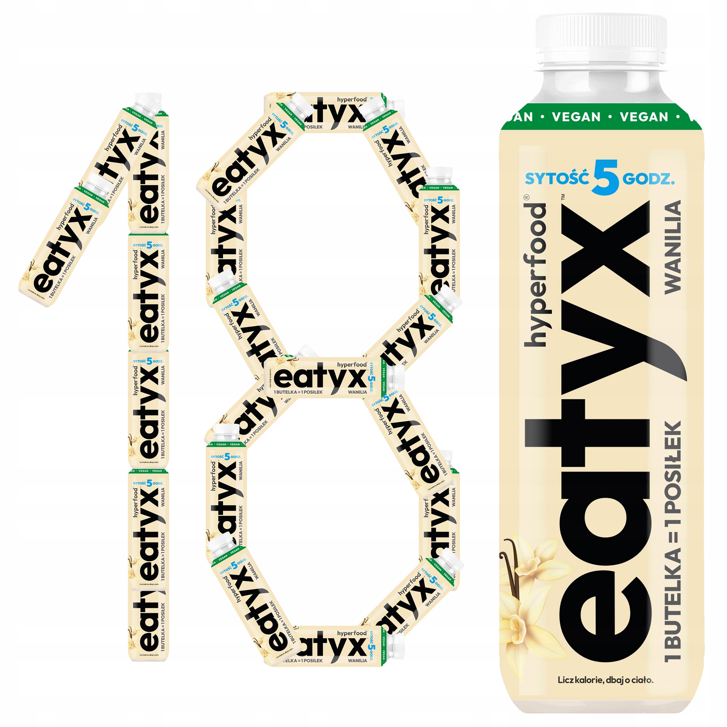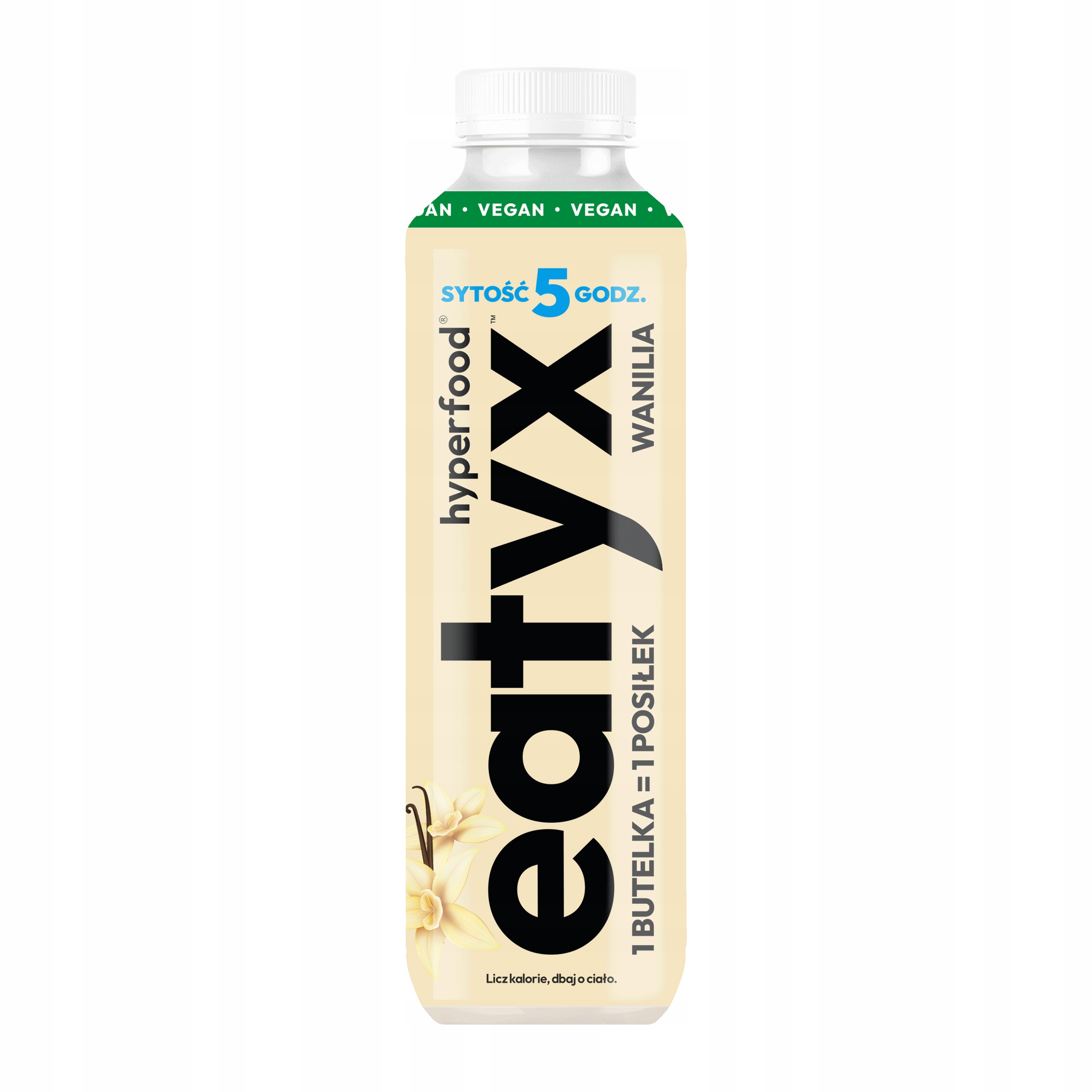 Jeśli starasz się zdrowo odżywiać, ale nie zawsze znajdujesz czas na gotowanie pełnowartościowych posiłków, eatyx powstawał z myślą właśnie o Tobie. To gotowe do spożycia posiłki w formie pysznego napoju, które pod względem wartości odżywczych dorównują tradycyjnym daniom obiadowym. Możesz nimi zastąpić dowolne danie w ciągu dnia: śniadanie, obiad czy kolację. Napój o smaku waniliowym nie wymaga wcześniejszego przygotowania, dzięki czemu bardzo dobrze sprawdzi się w roli posiłku do pracy, szkoły lub na dłuższy wyjazd. Napój w praktycznej butelce z łatwością zmieści się w torbie, plecaku, czy nawet podręcznej torebce. To kompletny zestaw składników odżywczych, który dostarczy Twojemu organizmowi wszystkiego, co niezbędne do prawidłowego funkcjonowania na co dzień.