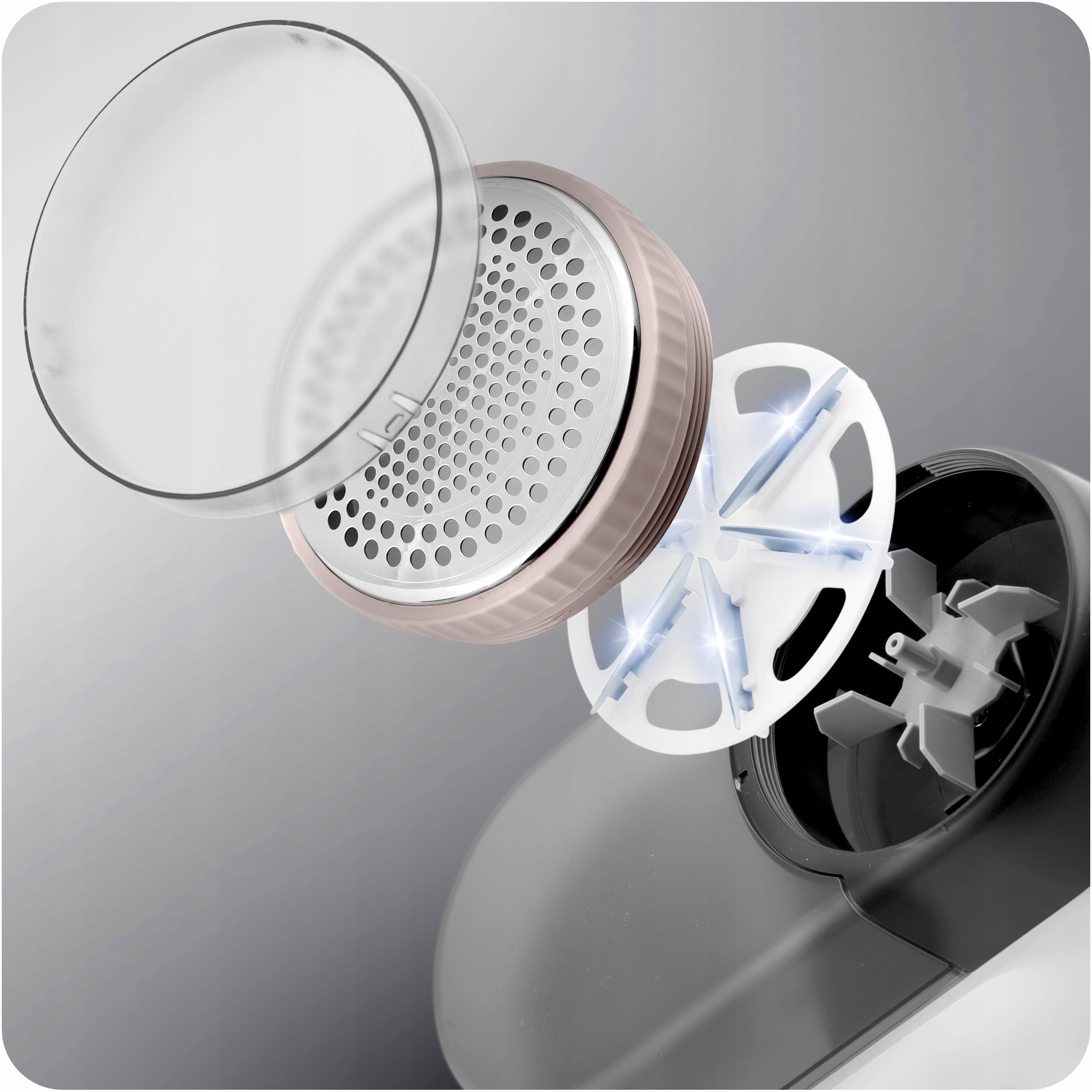 Dzięki zaawansowanej technologii i ostrzom ze stali nierdzewnej urządzenie skutecznie usuwa zmechacenia i kuleczki, przywracając ubraniom gładkość i estetyczny wygląd.