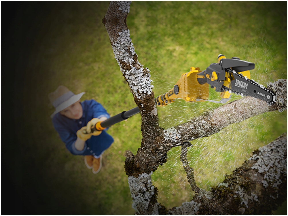 ► Przedłużka teleskopowa pozwala na ścinanie gałęzi na wysokości, bez konieczności korzystania z drabiny.
