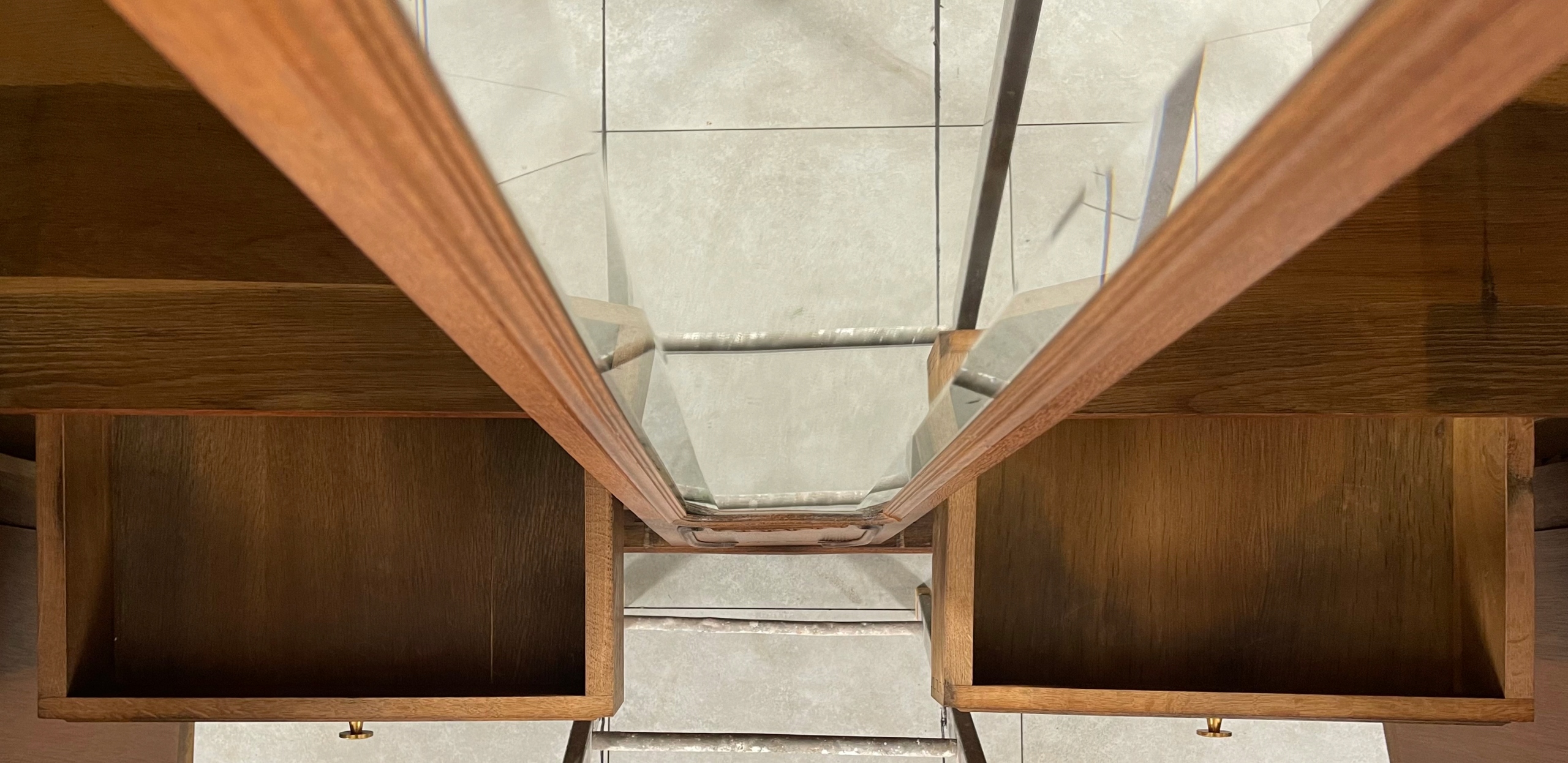 Posiada oryginalne, kryształowe lustra. Lustra są fazowane i pochodzą z epoki. Tafla luster w dobrej kondycji, choć możemy zauważyć na niej ślady, które pozostawił po sobie upływający czas (patrz ostatnie załączone zdjęcie).