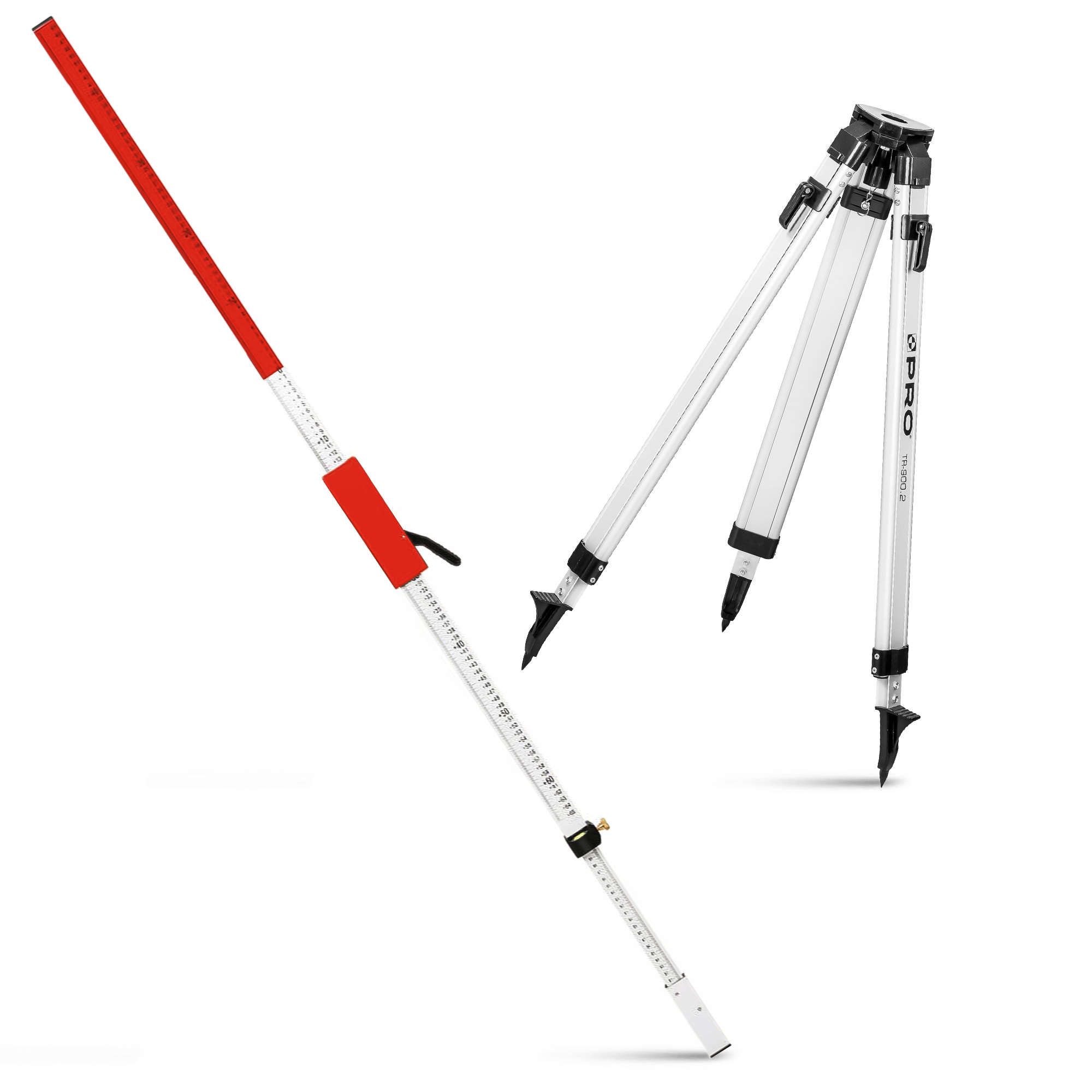 Łata niwelacyjna LLN-240 umożliwia dokładne określenie różnic wysokości na danym terenie. Posiada ona antypoślizgowy mechanizm Quick - Lock. Łata posiada skalę z ustalonym punktem zerowym pomiędzy polem czerwonym i białym. Statyw to kluczowe akcesorium zapewniające stabilność i precyzję podczas pomiarów. TR-900.2 posiada regulację wysokości, co jest kluczowe przy dokładnych pomiarach.