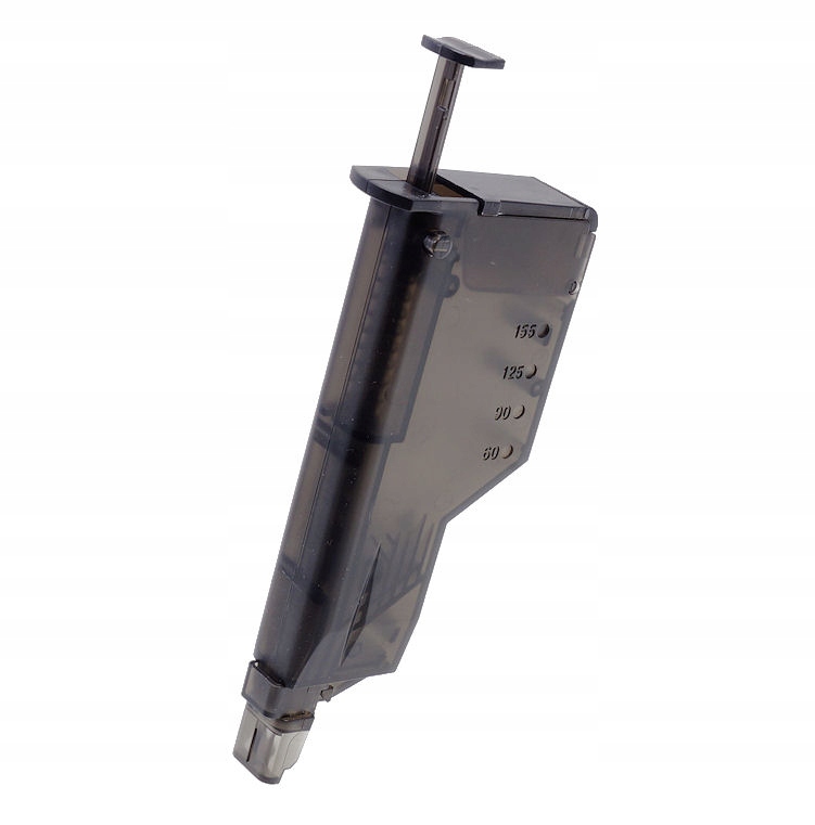 mieści aż 155 kulek, co pozwala na szybkie napełnienie magazynka.