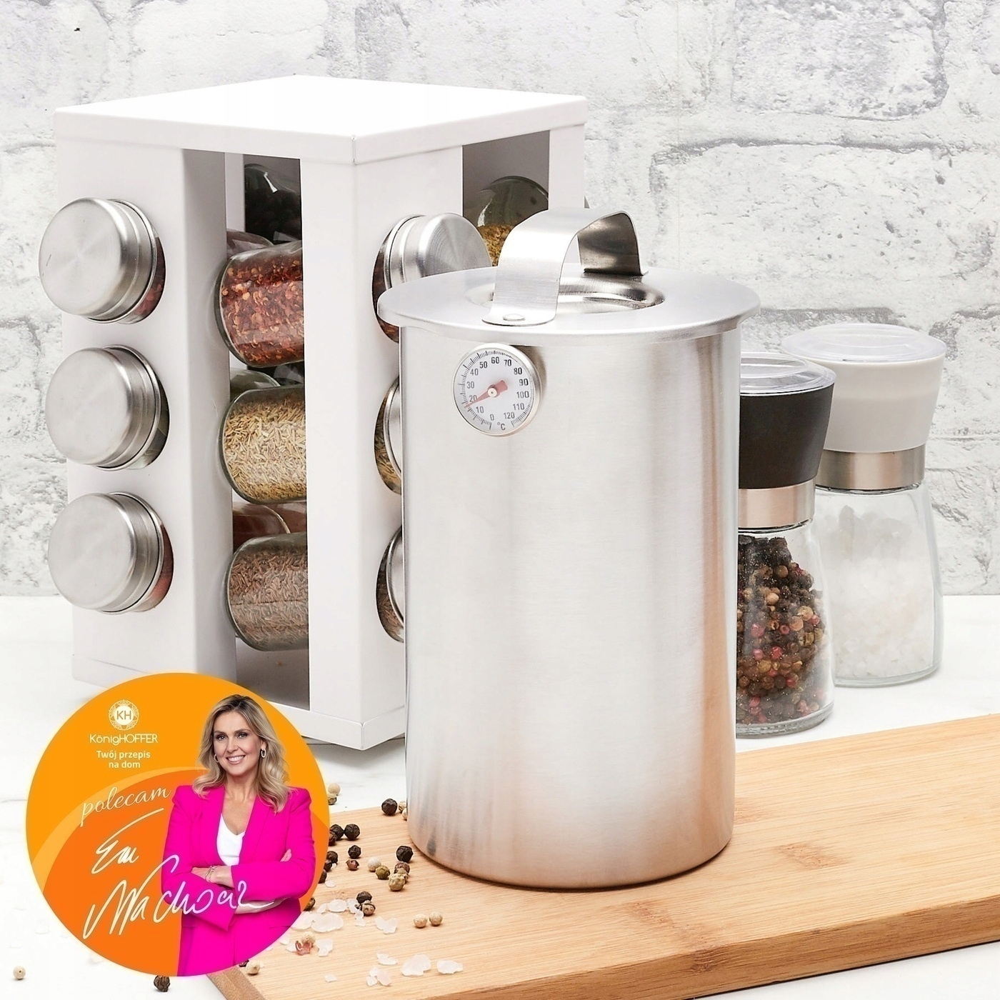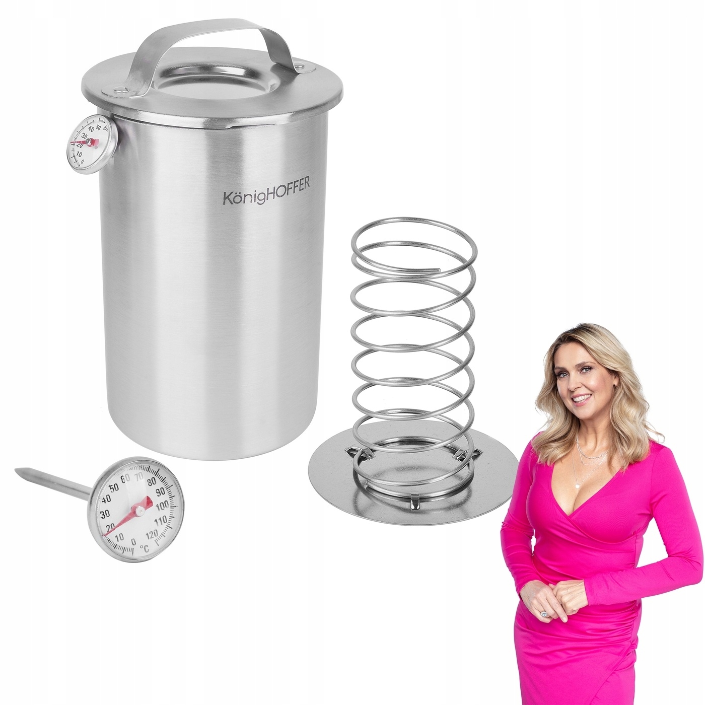 Pozostałe informacje: - przeznaczony do wyrobu wędlin domowym sposobem, - pojemność: 1,5 l, - satynowe wykończenie, - termometr w zestawie, - instrukcja obsługi na opakowaniu, - nie stawiać naczynia bezpośrednio na ogniu lub płycie grzewczej, - myć ręcznie