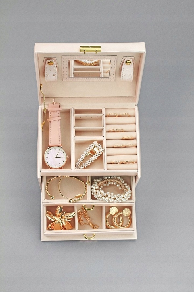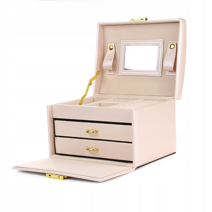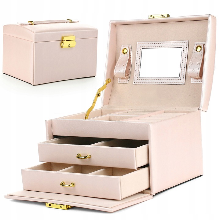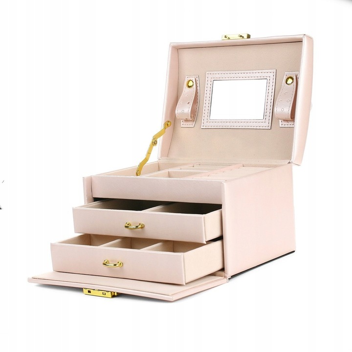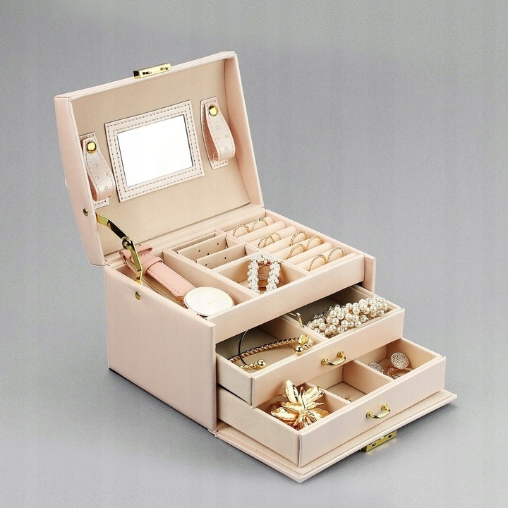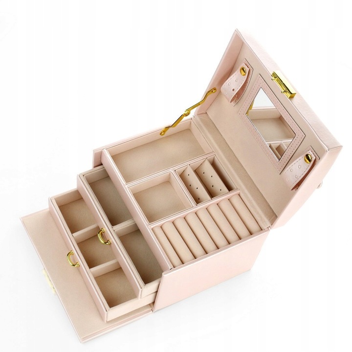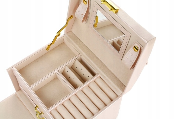 ✔ Funkcjonalny design – liczne przegródki i miejsca na różne rodzaje biżuterii zapewniają porządek.