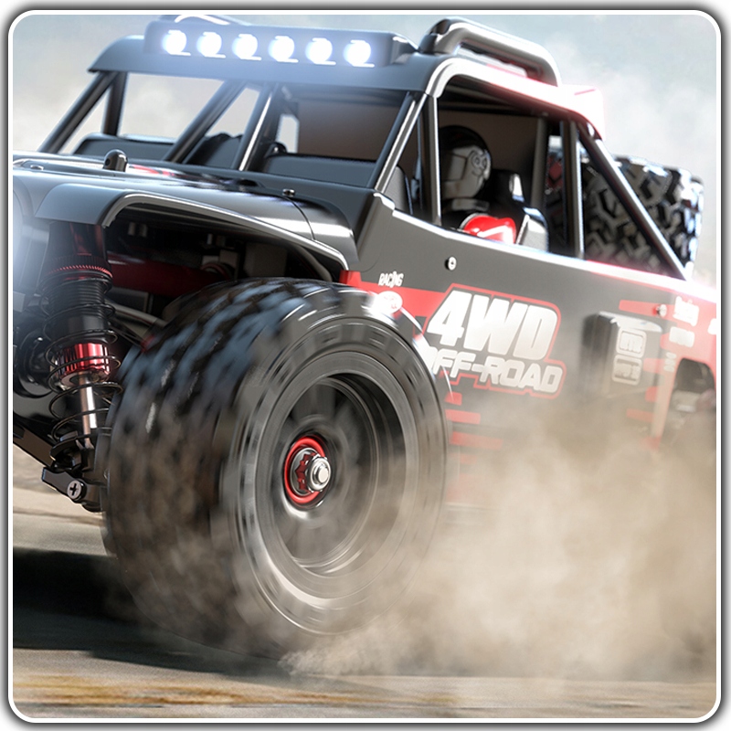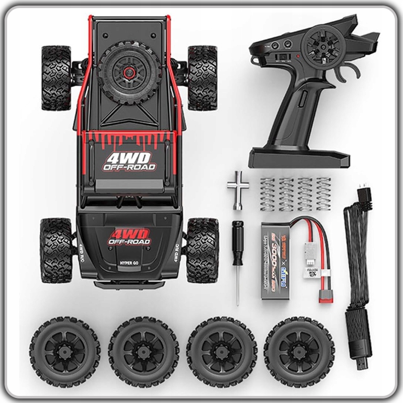 ⭐ Dzięki całkowicie metalowemu amortyzatorowi olejowemu, metalowej głowicy chroniącej przed kolizją i całkowicie metalowemu układowi przeniesienia napędu z metalowym mechanizmem różnicowym, ten samochód jest zbudowany tak, aby wytrzymać bicie i z łatwością poradzić sobie z trudnym terenem.