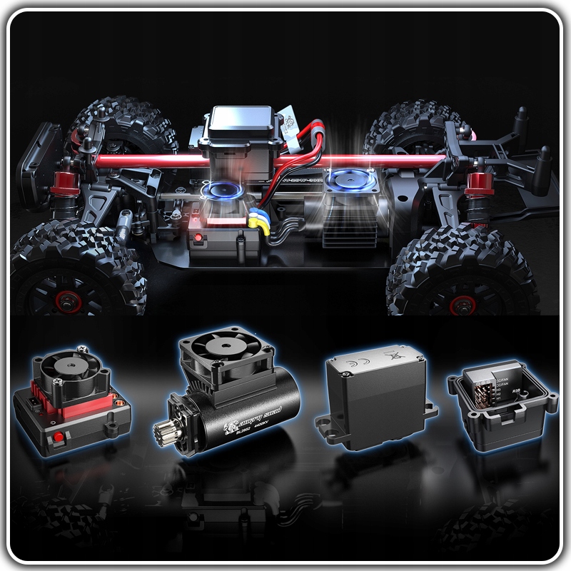 ⭐ Silnik jest wyposażony w aluminiowy radiator i wentylator dla wydajnego chłodzenia. 45A bezszczotkowy ESC z metalowym radiatorem zapewnia płynną pracę, podczas gdy 2,2 kg serwo momentu obrotowego o prędkości 0,13 s/60° zapewnia precyzyjną kontrolę.