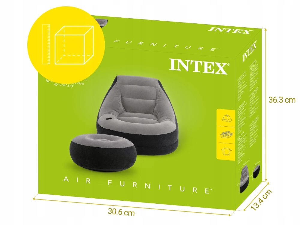 Dmuchany fotel z podnóżkiem marki Intex to idealna propozycja do Twojego domu. Został wykonany z mocnego i wytrzymałego materiału winylowego.