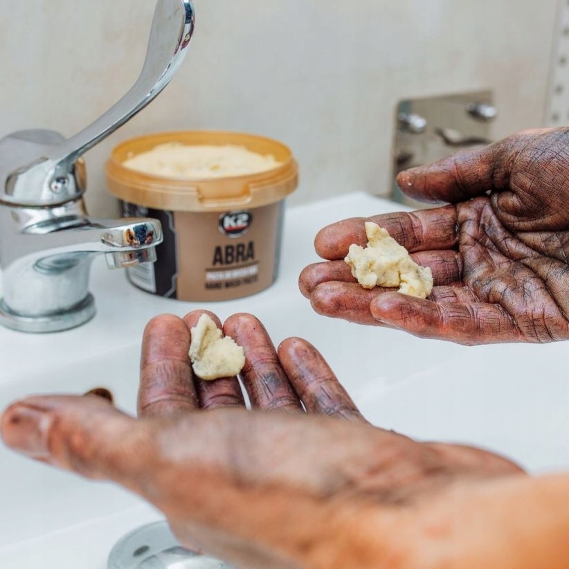 Pasta do mycia rąk K2 ABRA przeznaczona jest do czyszczenia, ochrony i pielęgnacji rąk. Posiada zaawansowaną, nowoczesną recepturę opartą na innowacyjnym ścierniwie, które polepsza właściwości mechaniczne i ułatwia mycie. Dzięki konsystencji, przypominającej delikatną masę plastyczną lub puszyste ciasto, jest wyjątkowo przyjemna w użyciu.