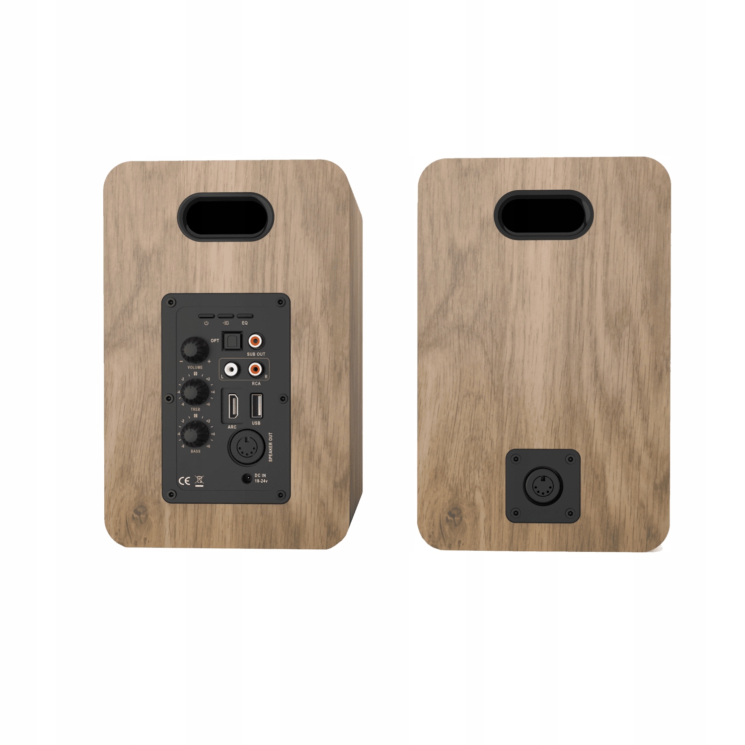 Набор из двух полочных динамиков для разных применения. Динамики можно использовать для телевизора, компьютера, а также для подключения к смартфон. Эта модель имеет встроенный модуль Bluetooth, входы: HDMI (ARC), оптический и RCA для внешние источники звука. Также доступен USB-плеер. Встроенный усилитель имеет мощность выход 2 x 25 Вт RMS. Динамики имеют корпус MDF типа bass-reflex и пульт дистанционного управления для удобное управление.
