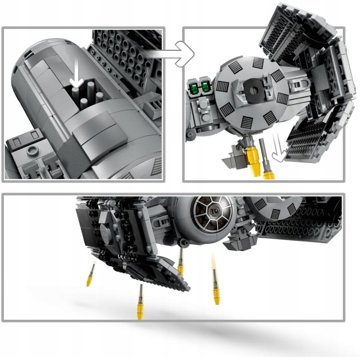 Поклонники фильма " Звездные войны: Империя контратаки " могут играть имперские миссии, направленные на победу над восстанием с помощью построенные из блоков LEGO ® бомбардировщики TIE (75347). Корабль имеет открытую кабину с местом для минифигурку, функцию сброса торпед и два бластера. Это отличный подарок для фанатов Star Wars™ в возрасте от девяти лет. В набор входят минифигурки Дарта Вейдера, вице-адмирала Слоан и пилот бомбардировщика TIE с оружием, а также дроид GNK и тележка для перевозки торпед.