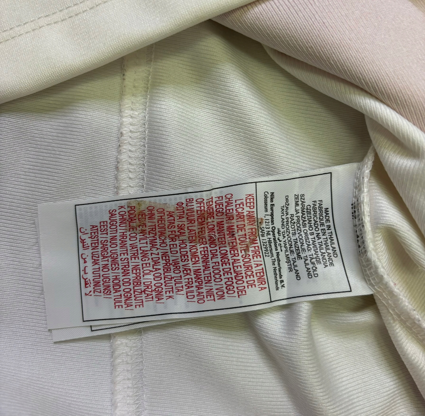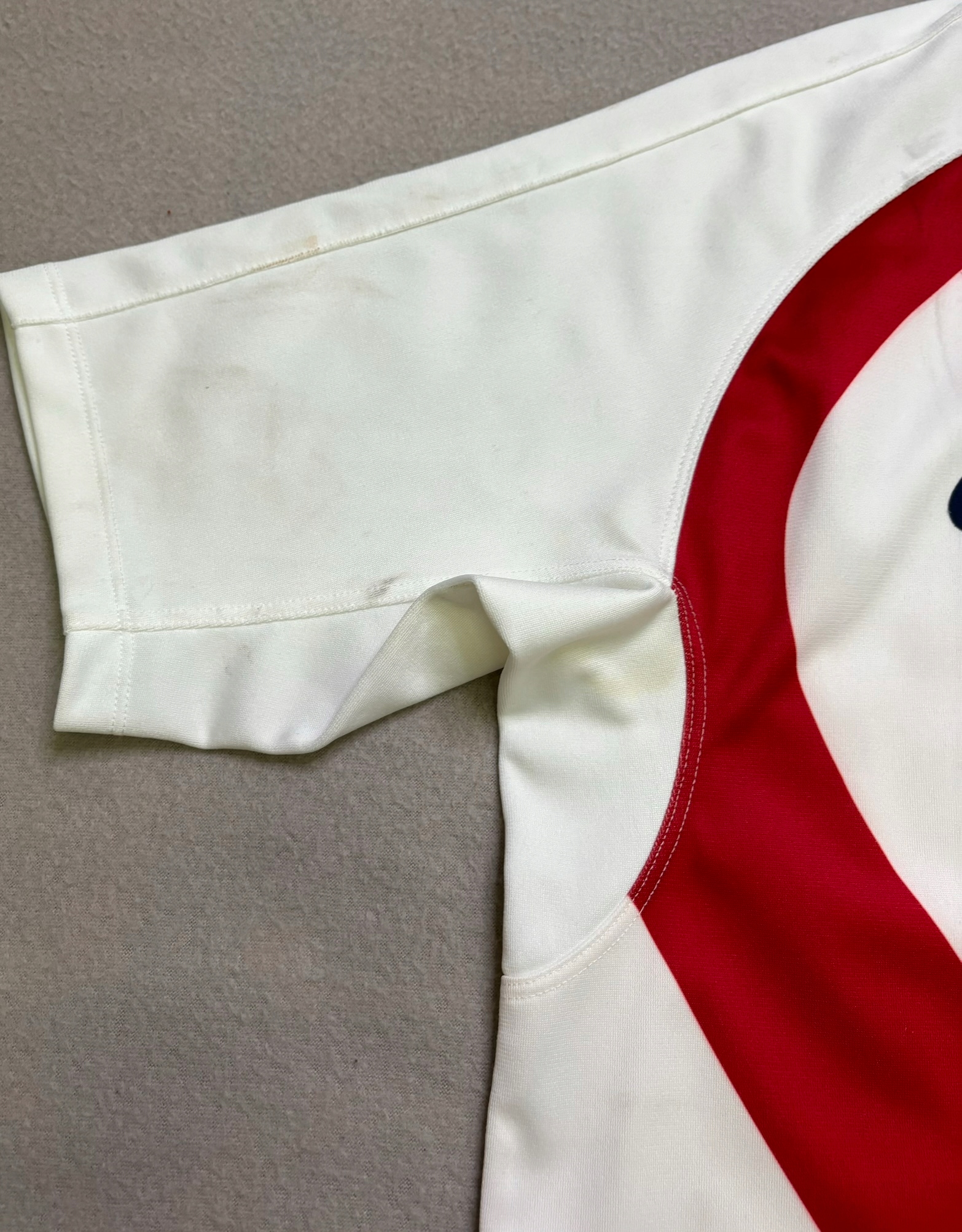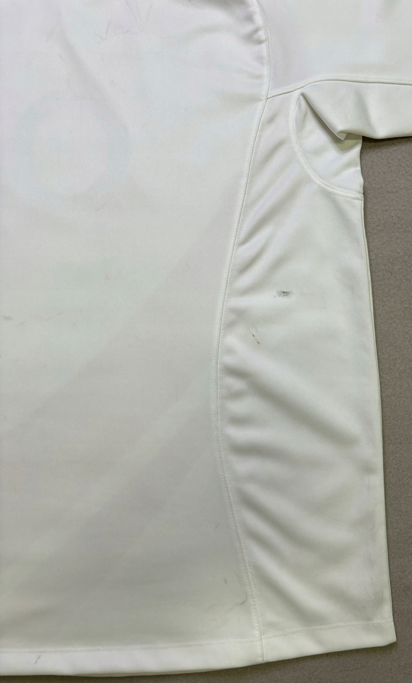 Zabrudzenia i plamy na koszulce widoczne na zdjęciach.