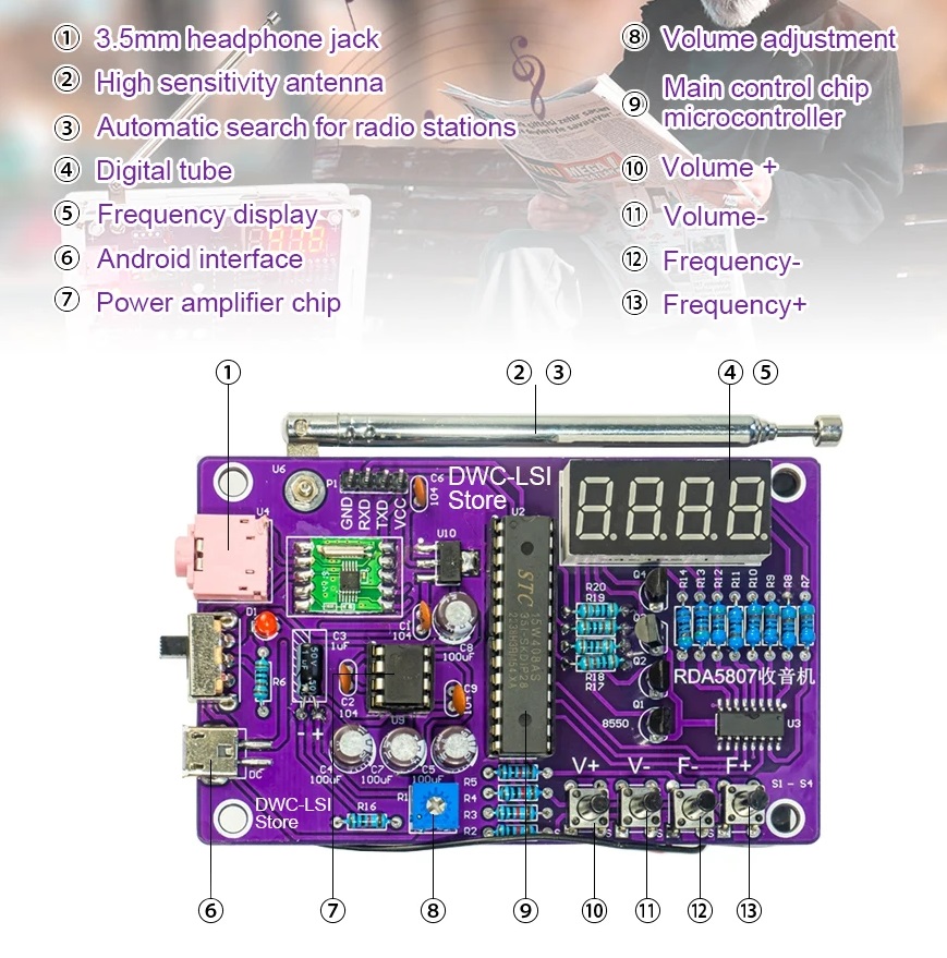 Ciesz się zabawą przy tworzeniu własnego radia z naszym zestawem DIY! Montaż jest prosty, wystarczy postępować zgodnie z poniższymi krokami: