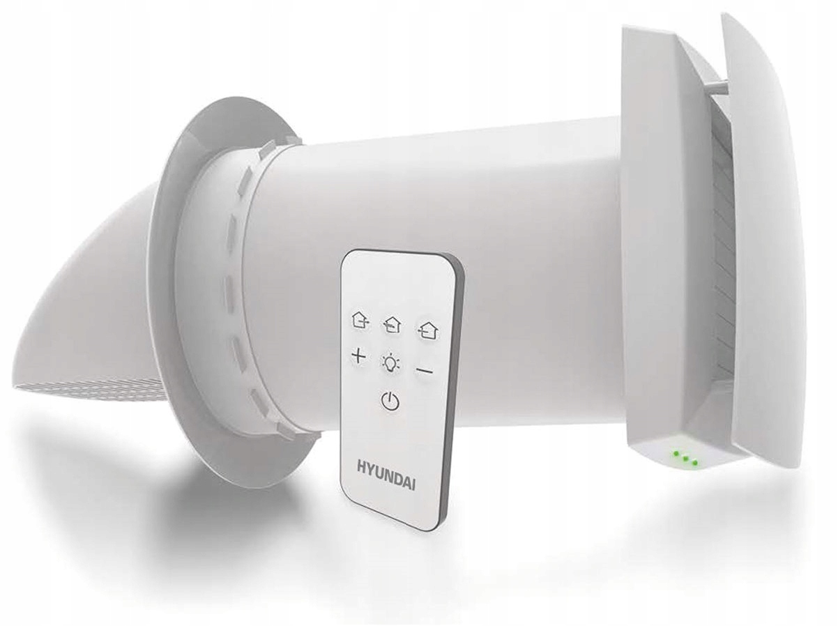 Rekuperator ścienny, kompaktowy marki Hyundai to nowoczesne i sprytne rozwiązanie w celu zapewnienia mechanicznej wymiany powietrza pomieszczeń nawet do 64m3/h. Urządzenie wyposażone jest w ceramiczny wymiennik ciepła, który umożliwia nawiew świeżego i ogrzanego powietrza poprzez odzysk ciepła na poziomie 92%. Dwa zintegrowane filtry zapewniają wydajną filtrację powietrza na poziomie G3. Rozsuwany kanał umożliwia montaż przy różnej grubości ścian (240~420mm). Rekuperator został wyposażony również w pilot zdalnego sterowania.