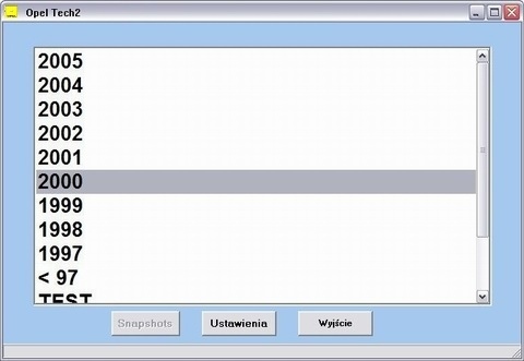 Wybierając opcję "Diagnostyka" pojawi się okno z wyborem rocznika auta, który chcemy diagnozować, następnie zostaniemy poproszeni o wybranie modelu oraz sterownika z którym chcemy się połączyć. Rysunki przedstawiają przykładowy wybór sterownika Air-Bag dla modelu Opel Astra G - 2000r.